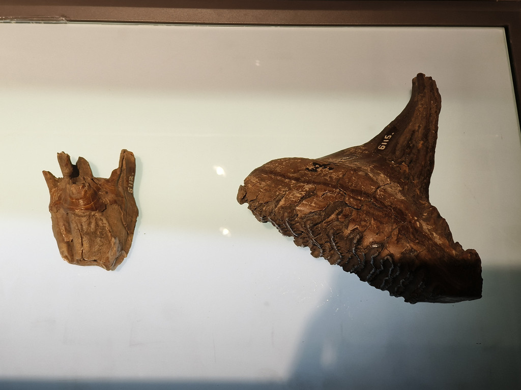 ↗披毛犀上臼齿、猛犸象下臼齿(旧石器时代)