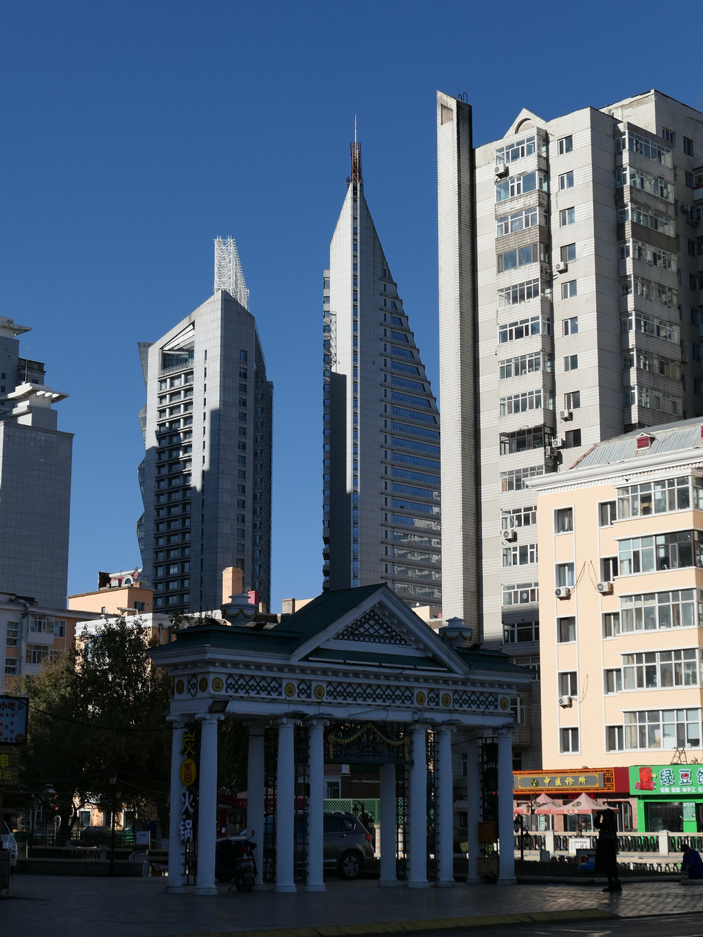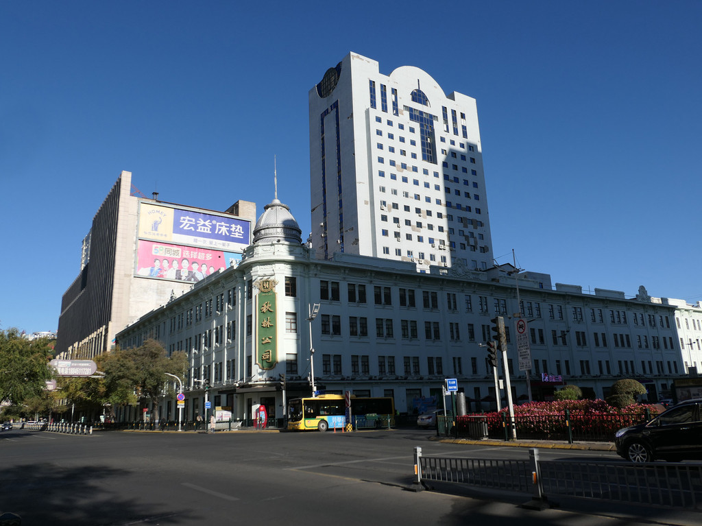 ↗哈尔秋林国际购物中心,与秋林公司一新一旧两座大楼隔街相望。