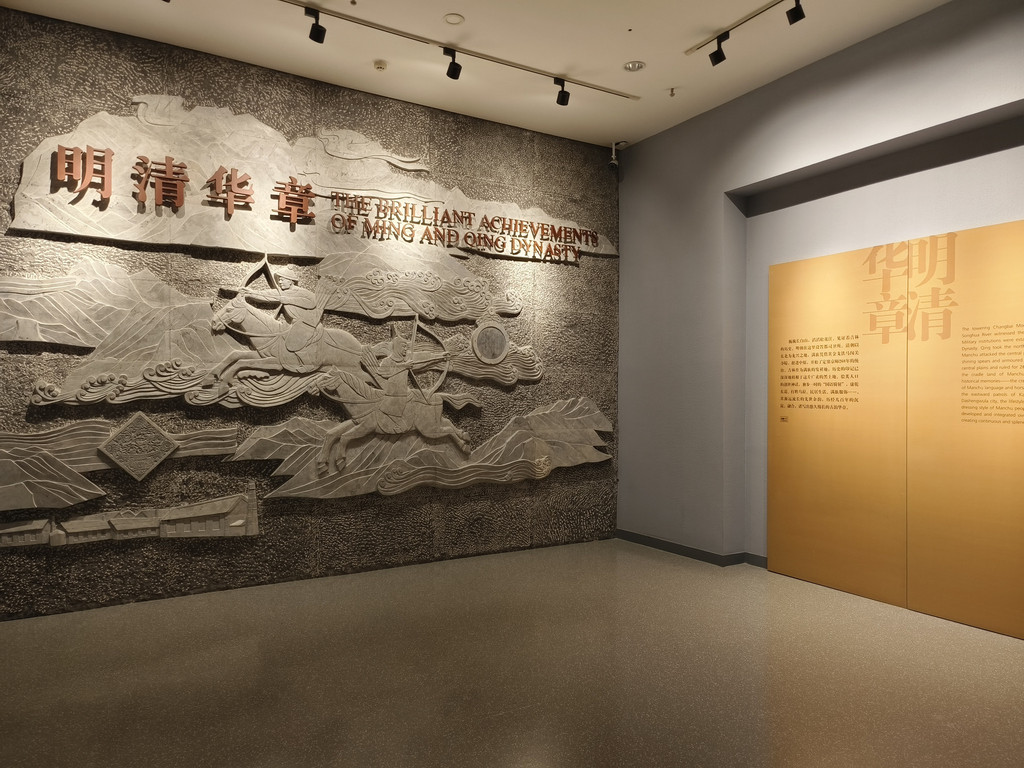 “明清华章”单元展示明清时期吉林省的历史。永乐时期,明置“奴儿干都司”管辖东北,持续不到30年被蒙古部落侵占。1616年,满族建立后金即后来的大清,1673年在吉林市建城“吉林乌拉”,满语意为“沿江城市”,这也是吉林省名的来源。