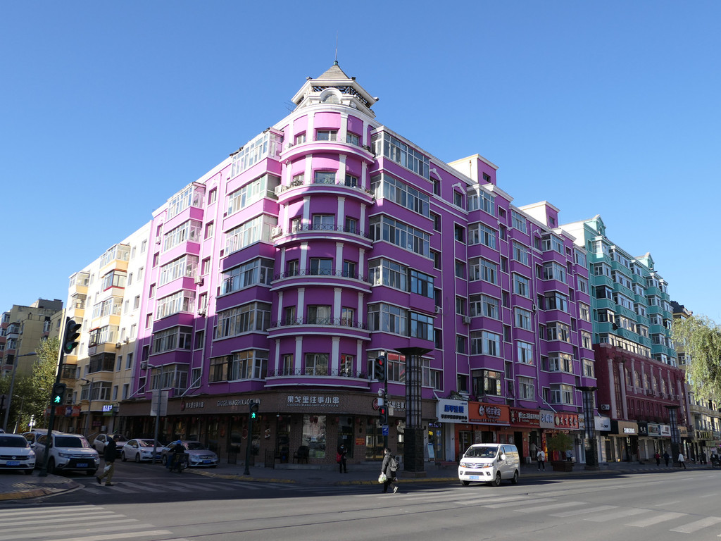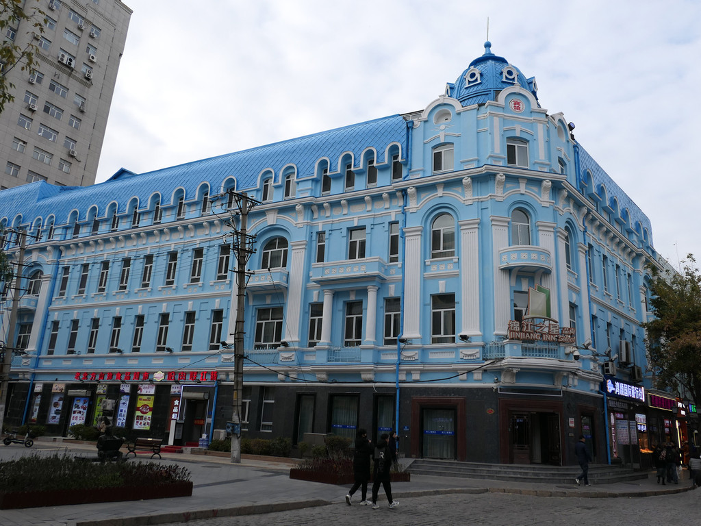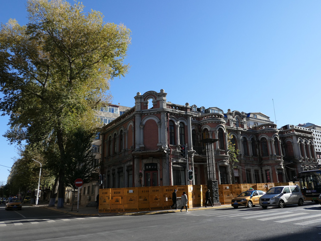 ↗格罗斯基药店旧址。位于果戈里大街177号,近比乐街路口。建于1921年,初为格罗斯基药店,1930年中东铁路俄籍职员在此开办郊外银行(又称环球银行),1942年歇业,解放后改为住宅。