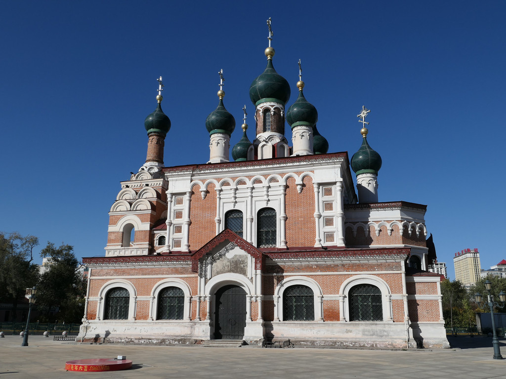 ↗圣·阿列克谢耶夫教堂(Saint Alekseyev Church),位于士课街与革新街交叉路口,建于1931年。原为随军东正教堂,1907年日俄战争后随俄军调防,从公主岭迁来哈尔滨东香坊一带俄国人聚居的阿列克谢耶夫卡村。1980年经修复后改为天主教堂。现为黑龙江省天主教爱国会、哈尔滨市天主教爱国会所在地。