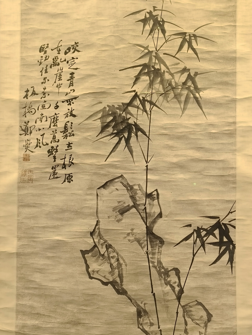 “扬州八怪”郑板桥工诗文,擅书画,尤长兰竹。曾在多幅画上题写“咬定青山不放松”诗句,个别字略有不同,如“立根”或作“扎根”,“乱崖”或作“破崖”“乱岩”,其余均同。