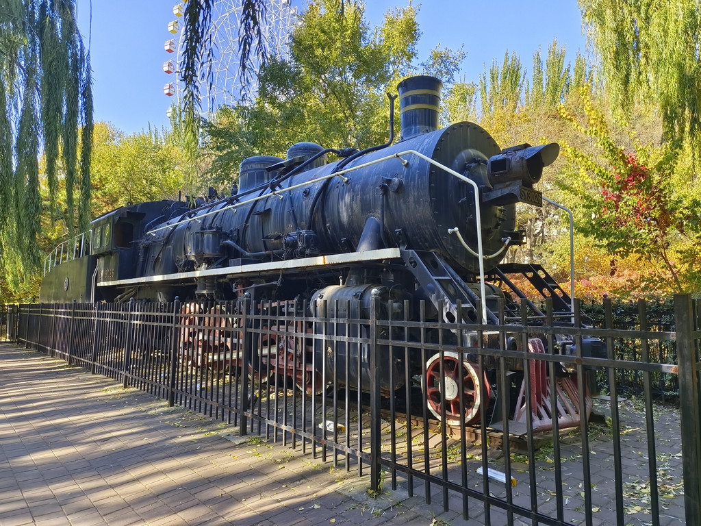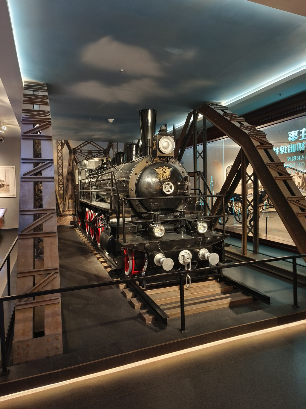 ↗中东铁路机车。1903年中国东方铁路(简称中东铁路)通车后,哈尔滨成为铁路枢纽、通商口岸。随着大量资本注入、众多移民定居,哈市迈向国际性商埠。