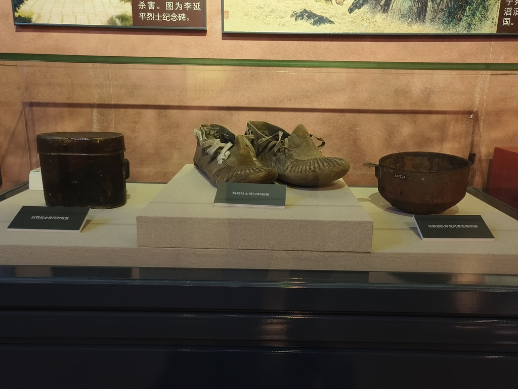 ↗抗联战士使用的饭盒、穿过的靰鞡、野营时煮饭的锅