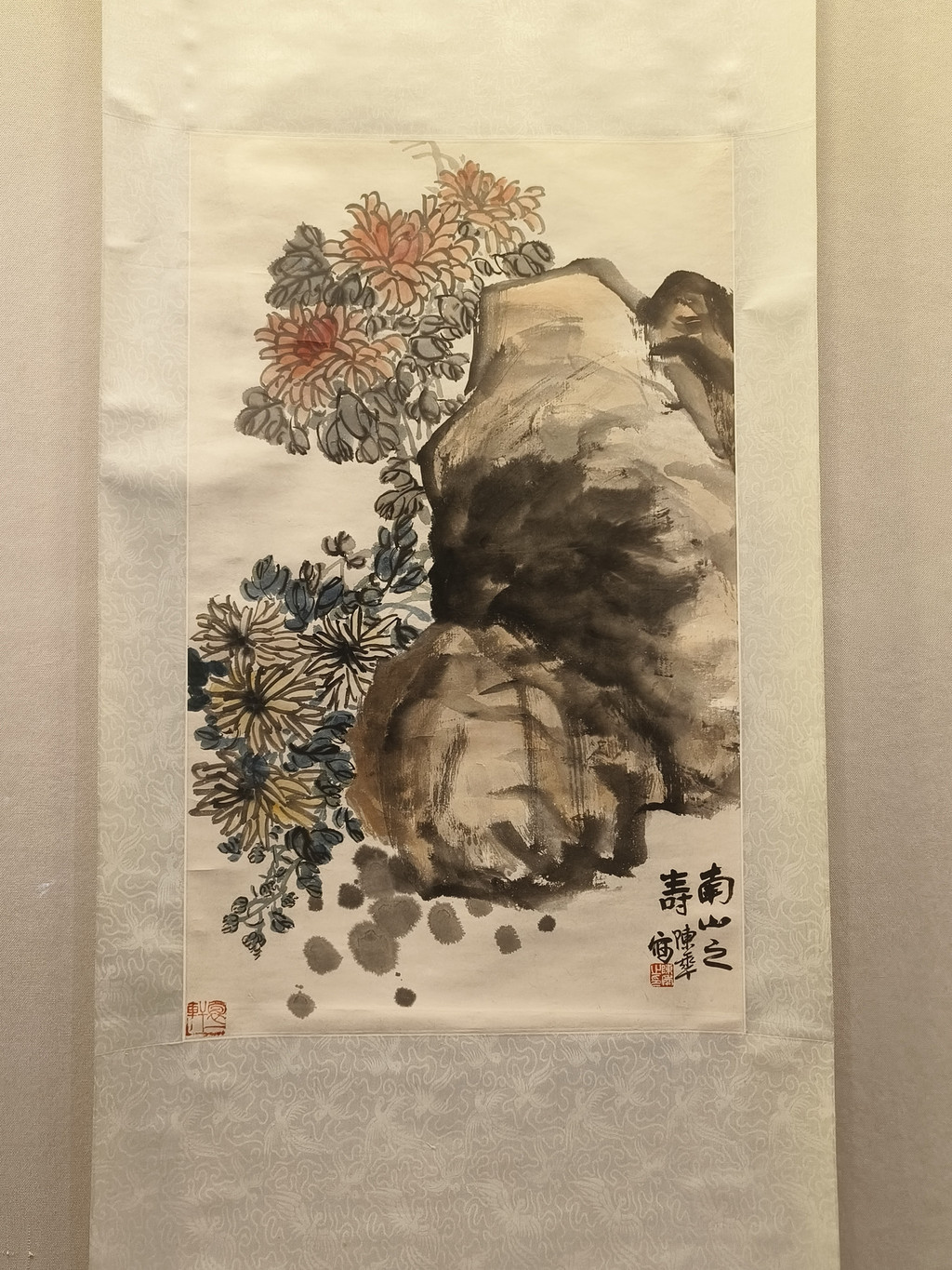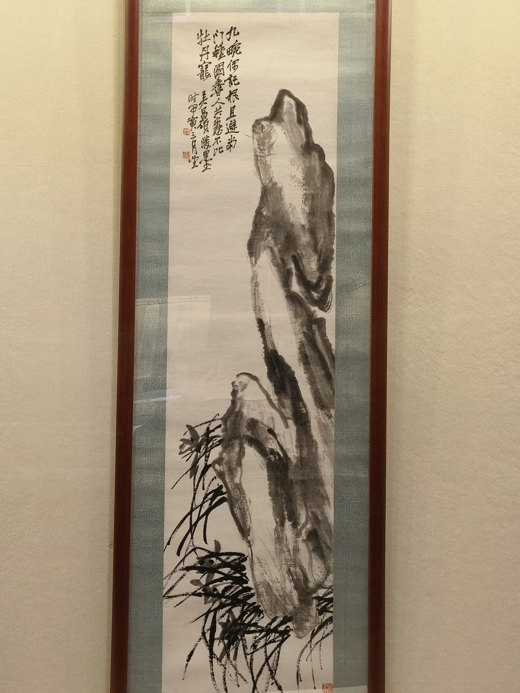 ↗兰石图轴(近代·吴昌硕)。款署:九畹偶托根,且避当门种。国香人共怜,不比牡丹宠。图轴是指裱褙后带轴的图画,轴头常用檀香木,既可辟湿气,开闸又有香气能辟蠹防蛀。