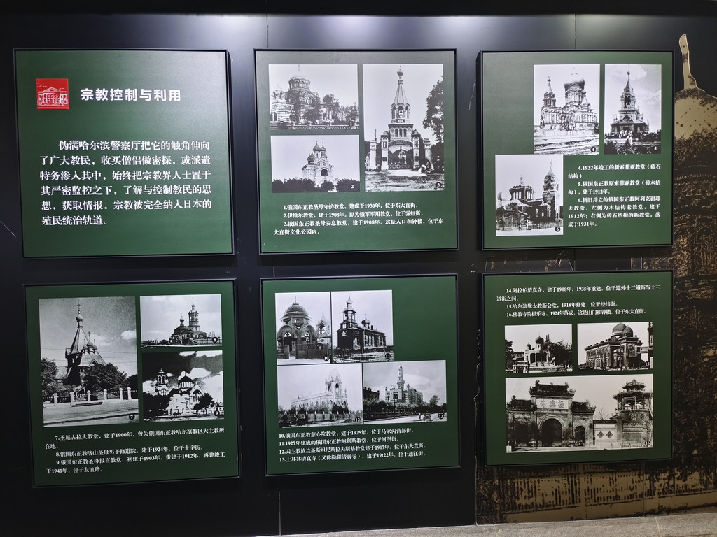 基本陈列《哈尔滨往事——20世纪初哈埠社会生活展》,包括“移民定居——中国人的生活”“建路兴业——铁路修建与科学方兴”“国际都市——多元文化交融荟萃”三个单元,通过文物、图片、场景复原等手段,展示哈市发展历程。