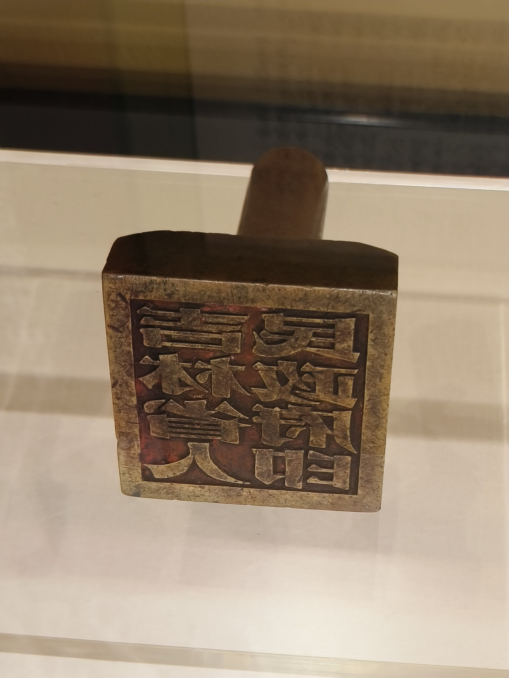 ↗中书门下之印、拏里浑河猛安之印(金)。“中书门下”是唐代议事机关,此印文为九叠篆“中书门下之印”六个汉字。拏(ná)里浑河是地名,猛安是金代女真族的军事和社会组织单位,相当于州。