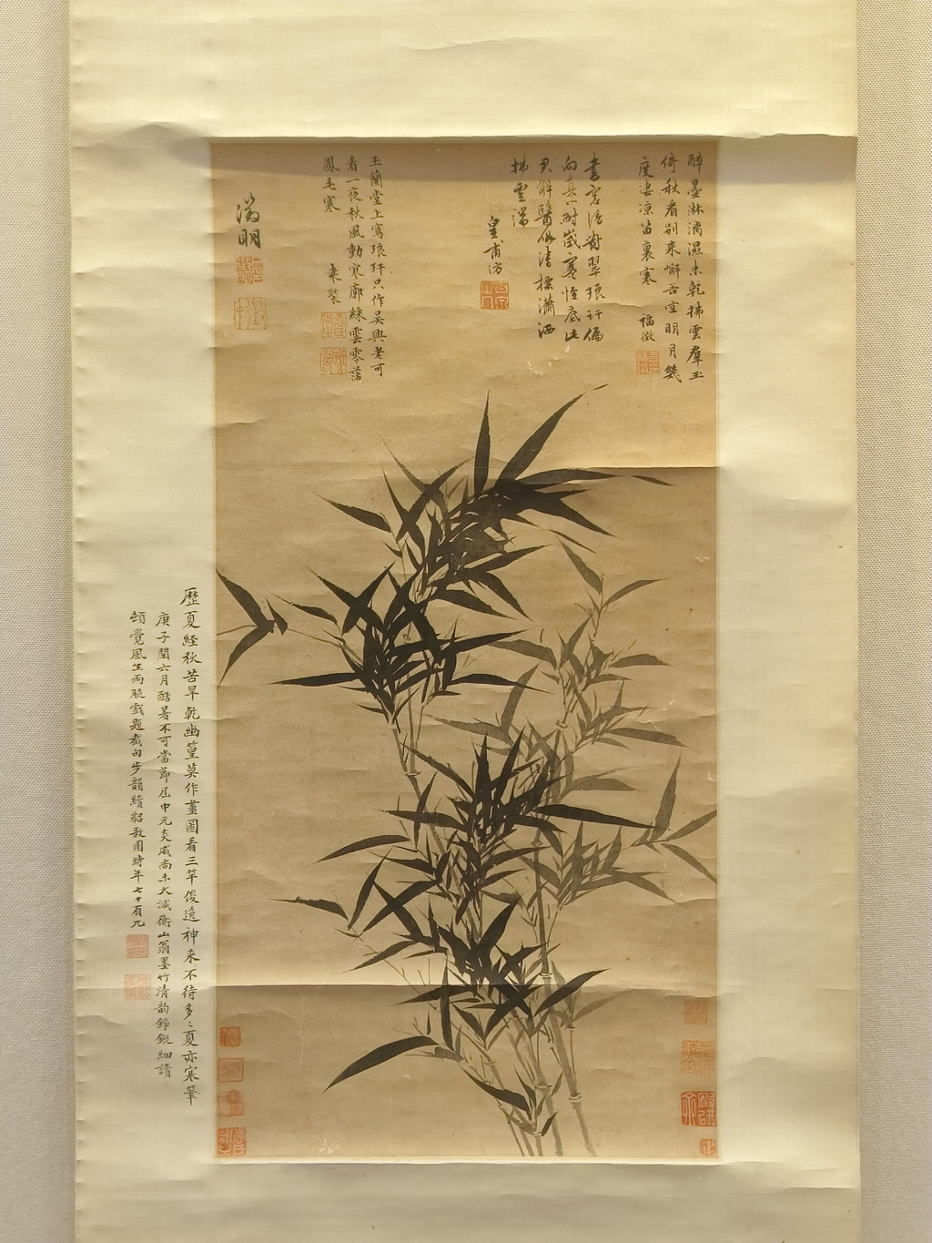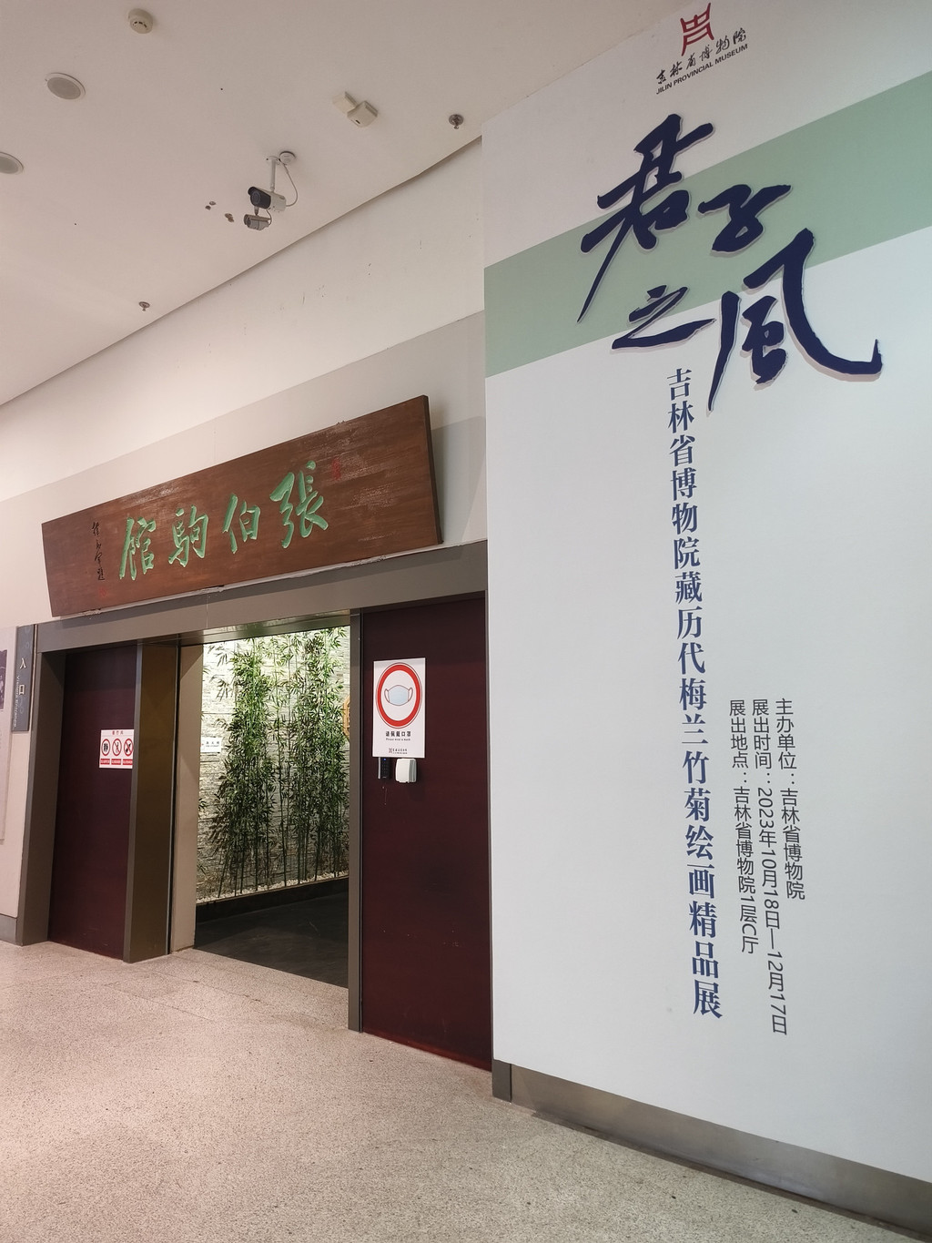 君子之风——吉林省博物院藏历代梅兰竹菊绘画精品展,位于一楼张伯驹馆,展出历代所藏梅兰竹菊绘画作品42件,包括元代赵岫《万竿烟月图》,明代“江南四大才子”文徵明和唐寅的墨竹,以及清代“扬州八怪”郑板桥、金农、罗聘等名家作品。