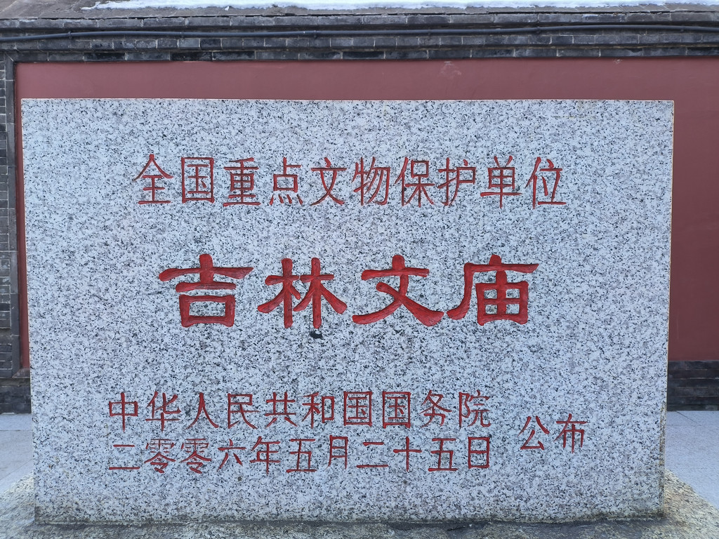 吉林文庙是清朝在东北建立的第一座孔庙,也是东北规模最大的孔庙,始建于乾隆元年(公元1736年),系乾隆皇帝亲自御批,原址位于城内东南隅,建成之初在正殿悬有康熙皇帝御书“万世师表”匾额,后嘉庆皇帝又赐“圣集大成”匾额。清光绪三十三年(公元1907年)吉林改设行省,原文庙简陋不足崇礼,故在今址拓建新庙,建筑红墙黄瓦,典雅庄严,古韵十足,是东北建筑等级最高、保存最完整的清代建筑群,与曲阜孔庙、南京孔庙、北京孔庙并称“中国四大文庙”,2006年成为全国重点文物保护单位。