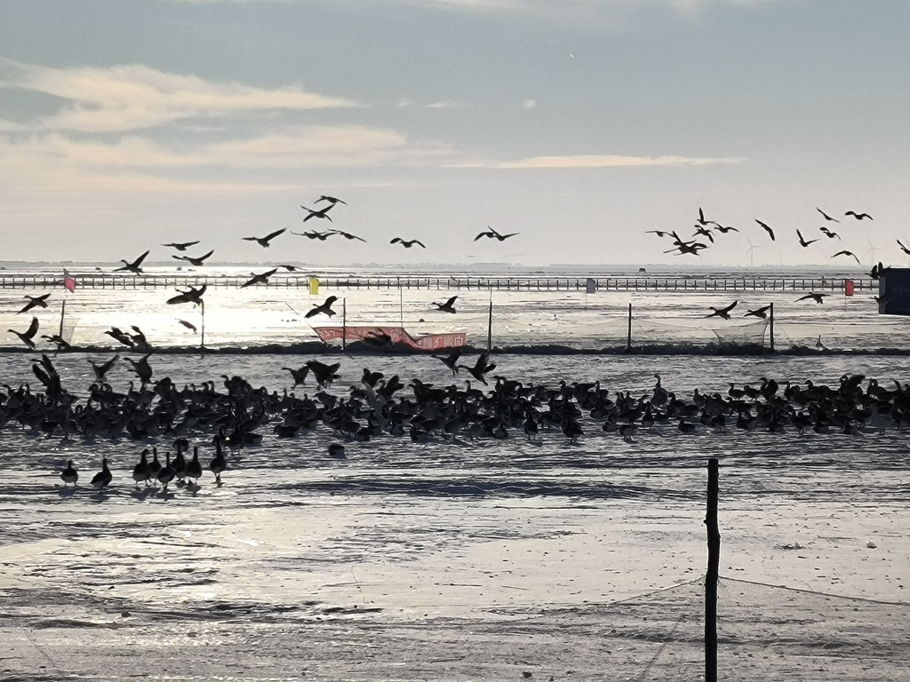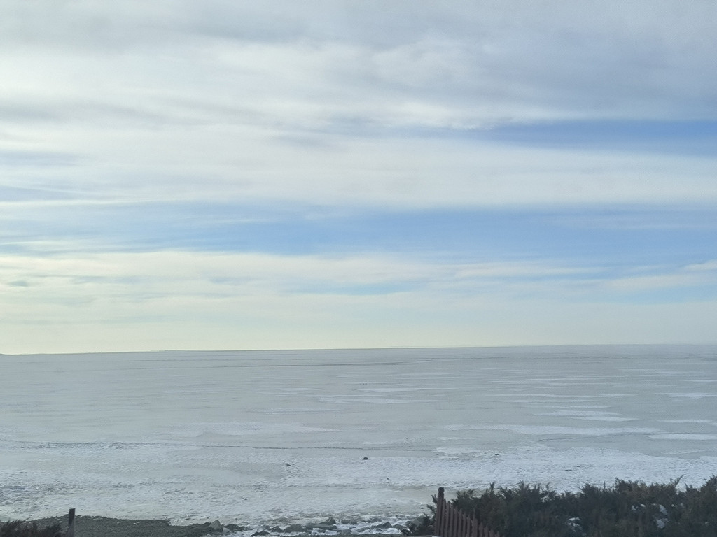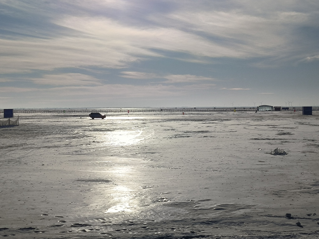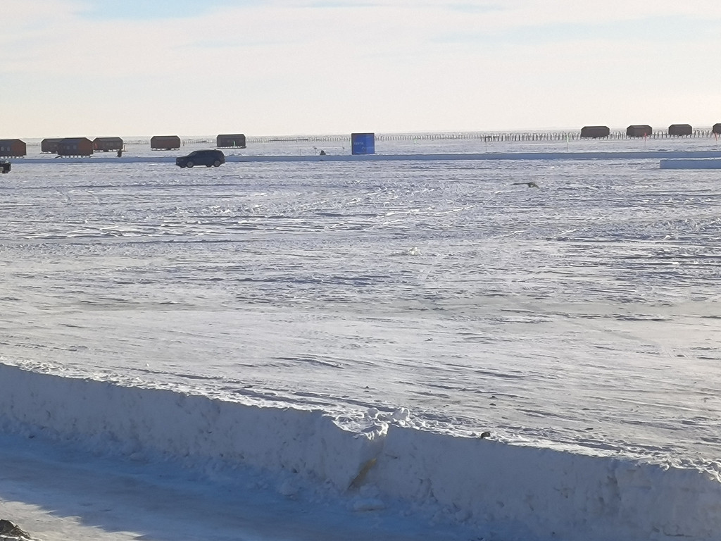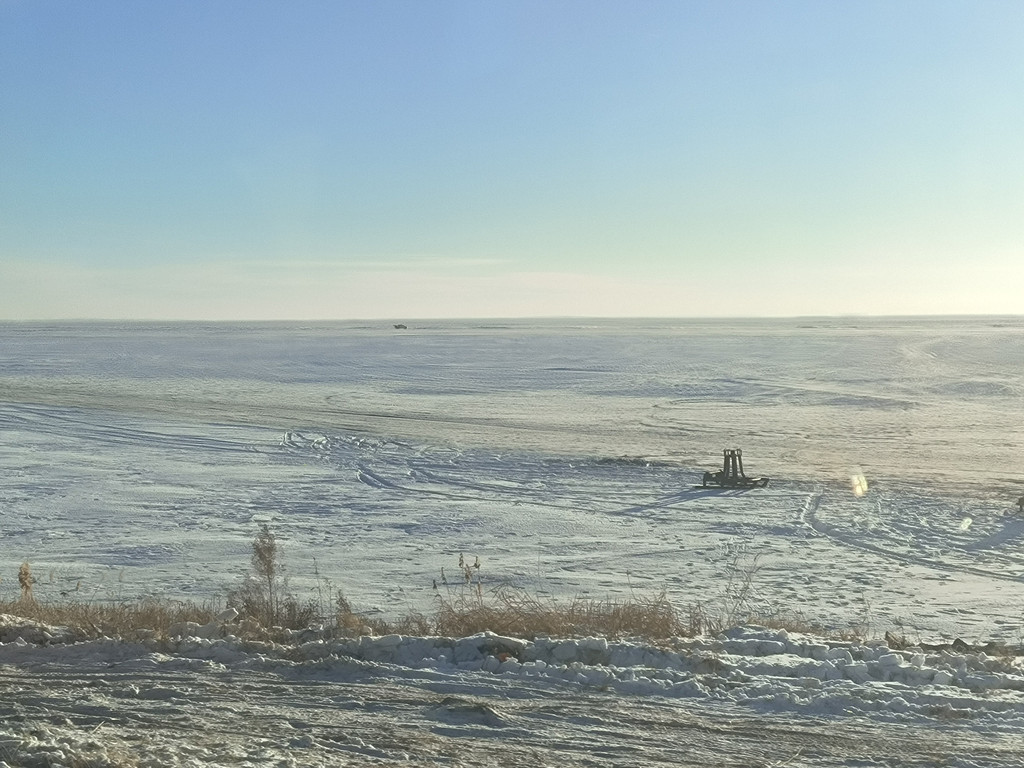 到达查干湖已是下午近1点,动车站到查干湖北区31公里,站前有免费直通车无缝对接,但上车只有2人,看来我们这种走法的人不多。直通车沿查干湖大路南行,在植物园十字路口右拐不远就看到查干湖了,虽然我们游览过许多湖泊,但冰湖景观还是第一次看到,只见湖面完全冻结,一望无垠,水不扬波,白茫茫直达天边,冰冻厚度达1米以上,汽车也可在湖面任意行驶。