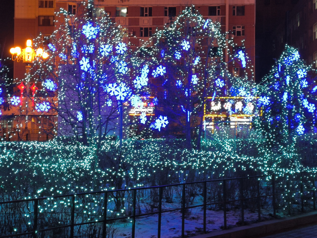 看来我对此地的攻略还不够细致,查干湖站虽然距湖最近,但动车班次较少,所以应该在松原市住一晚,再坐上午8点半专线车来为好。到东北的第一天我们方知:这里的冬季白昼较短,近4点夕阳已下山,4点半天已黑透,比南方早了2个小时,今晚是2024、2025跨年夜,长春站前广场火树银花,七彩缤纷。