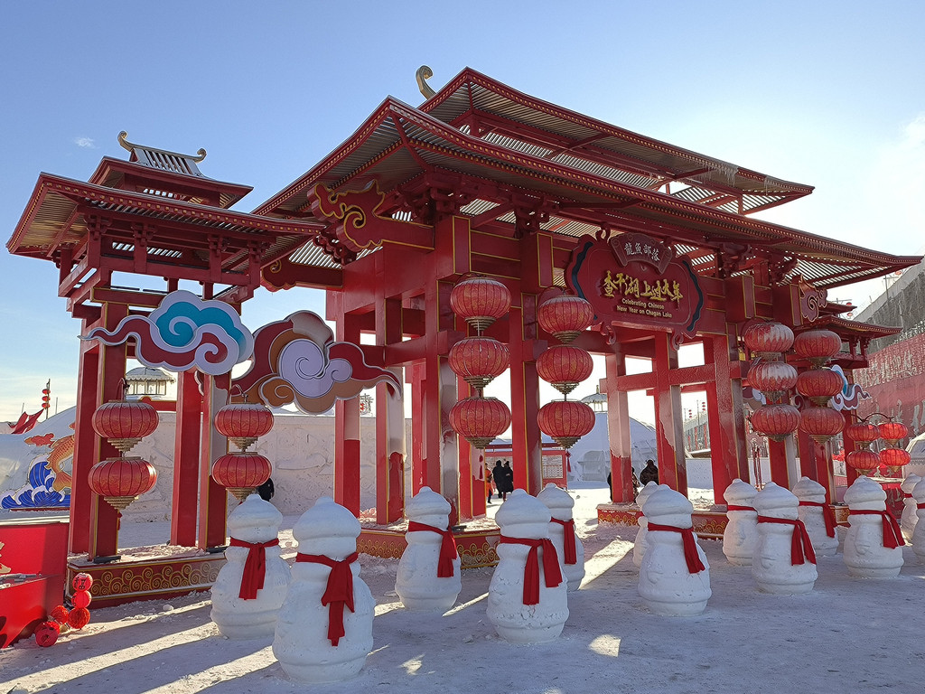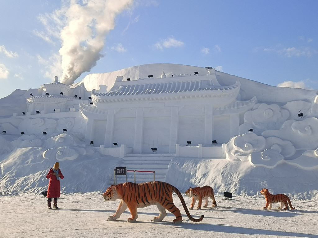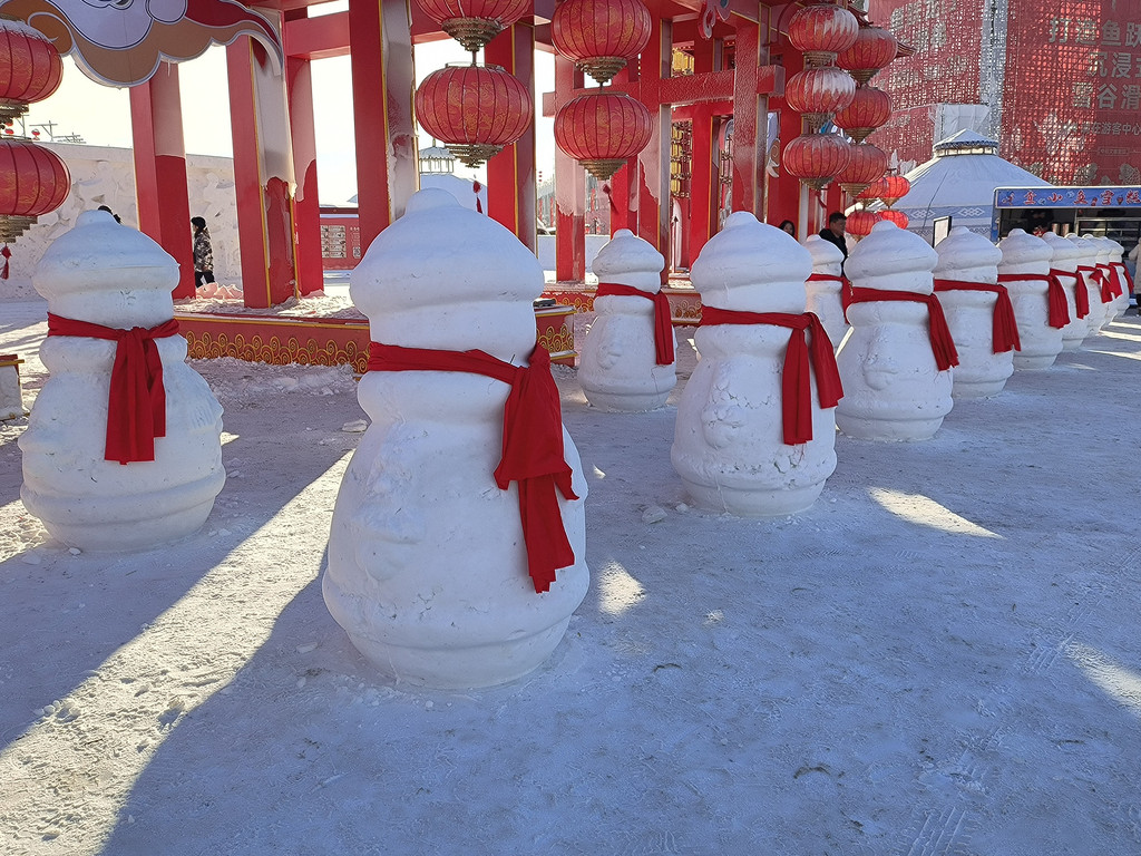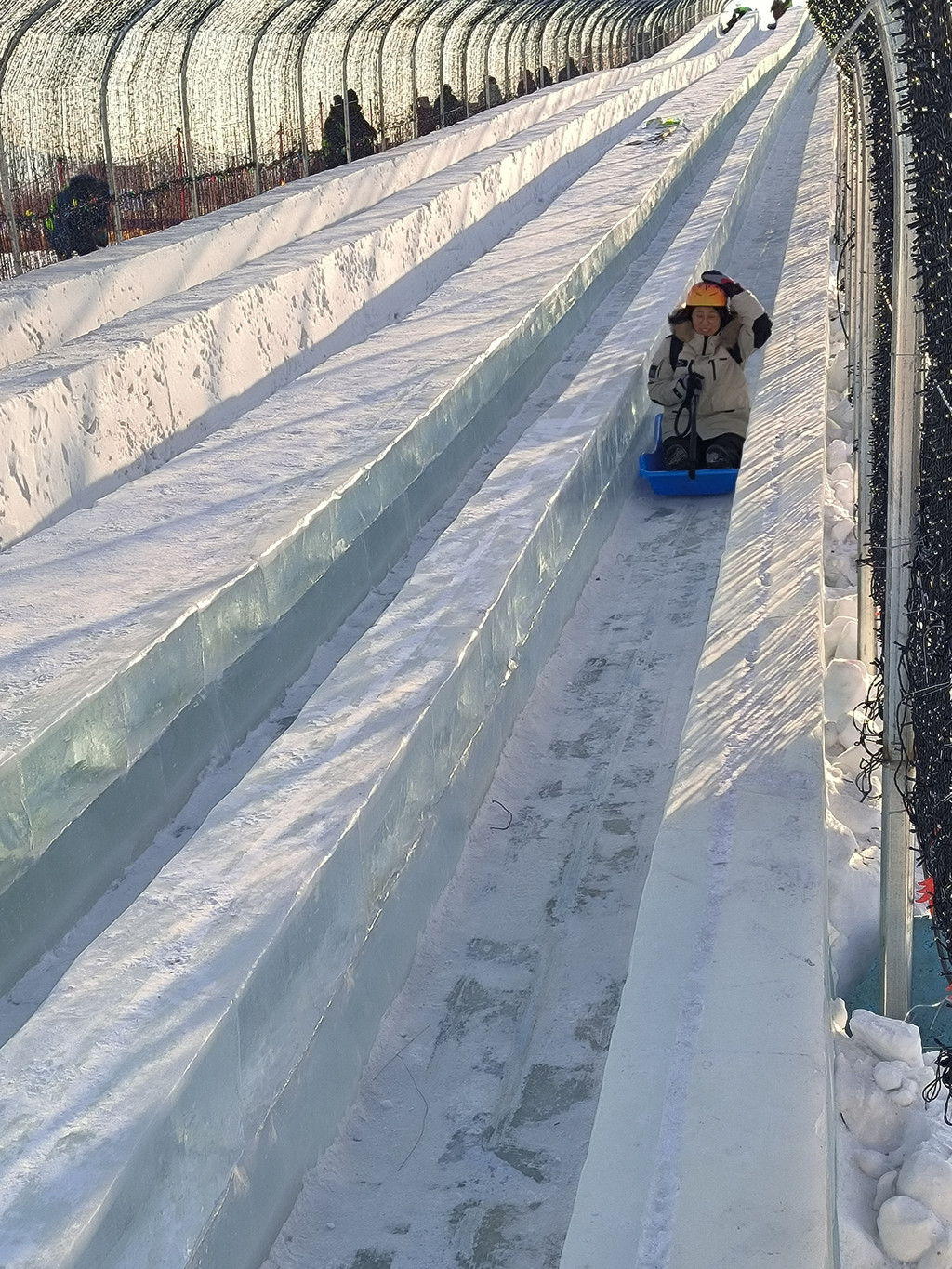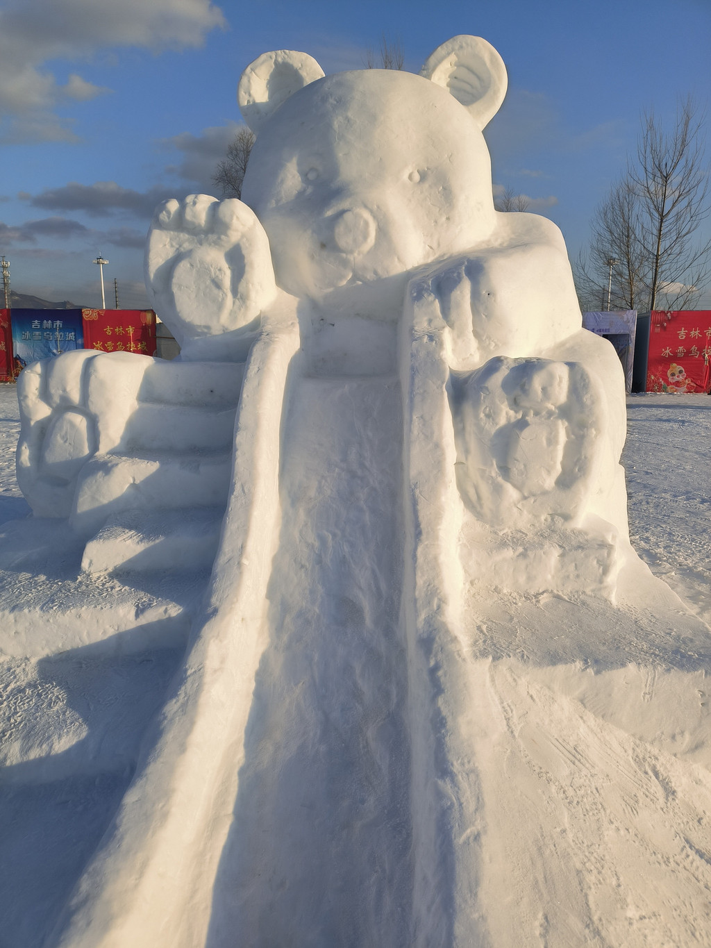 下午我们在吉林站西广场乘免费专线车,前往吉林高新区的冰雪乌拉城,吉林市的冰雪文化源远流长,此项目正是这一文化传统的现代延续,乌拉城总占地20万平方米,建造所需的雪量高达3万立方米,而冰量则为6000立方米,城中有13处大型冰雕,包括冰城门、冰滑梯以及10处小型冰雕,还有雪滑梯和雪城墙,其规模和项目虽然与哈尔滨无法相提并论,但也有自已的特色和风格,这些雪雕以独特的艺术表现形式,重现1898年吉林城的历史风貌,包括八大城门、文庙、打牲乌拉总管衙门、官参局、和将军府等建筑。