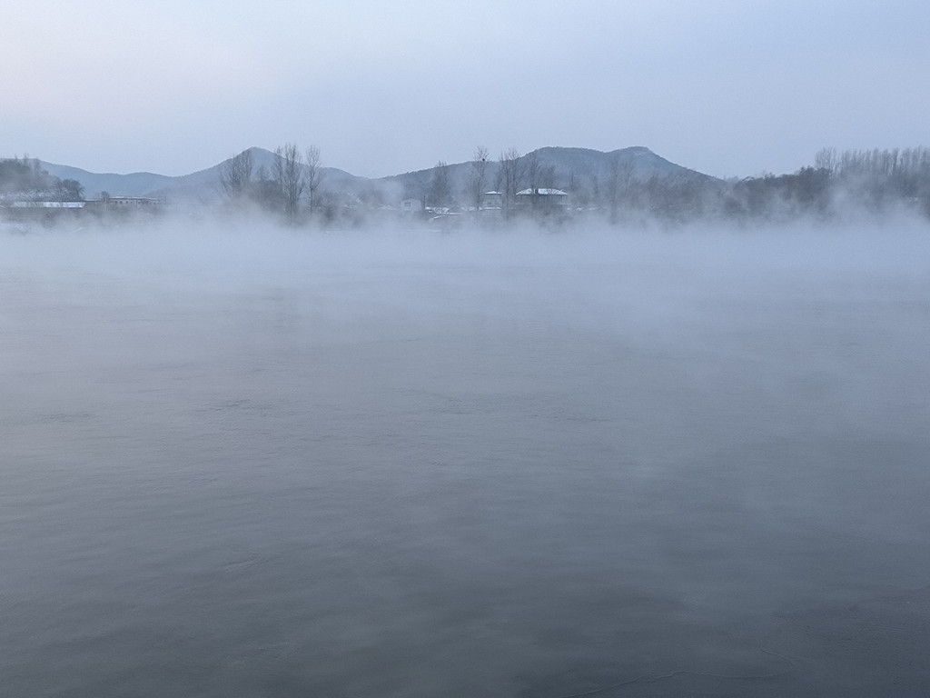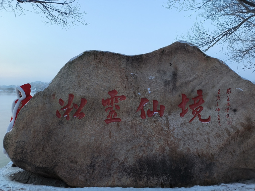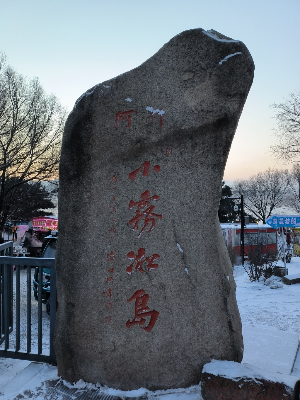 曲路纵深形成走廊,从网上的照片看的确令人震撼,而雾凇岛则多为孤独单树,许多人在别处看不到雾淞时便会到此,而且当天凌晨赶到即可,无需提前到达住上一夜,此外交通也比较方便,在吉林站东广场坐33路公交可达,车程近1个小时,上车、下车需分别刷卡一次,但公交车上并无暖气,需做好防寒工作。此行我们先后去吉林两次,时间分别是1号和7号,但两次都没有看到雾淞,原以为天冷更容易产生雾淞,但第二次去时气温已达零下23度,是此次东北行最冷的一天,我们坐在公交车都感到寒冷,松花江面上雾气升腾,岸边悬崖冰岩冻结,雾淞产生的条件似乎都已具备,但仍无雾淞出现,这是此行最大的遗憾。