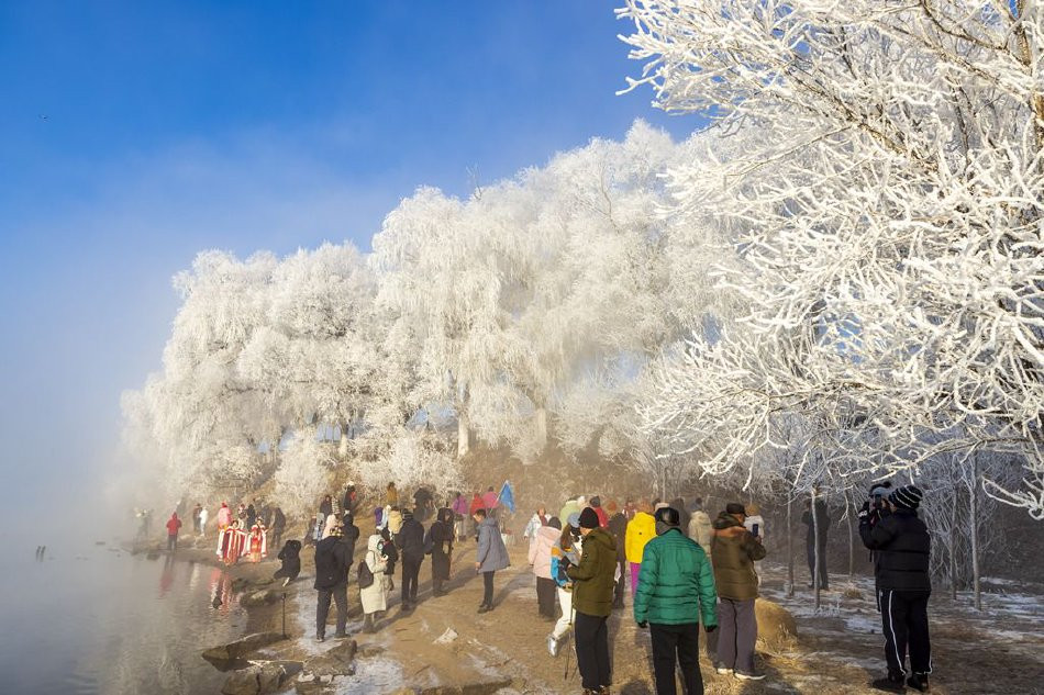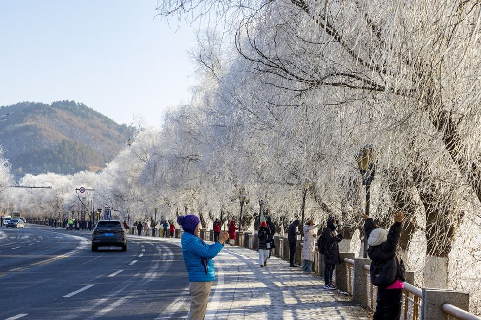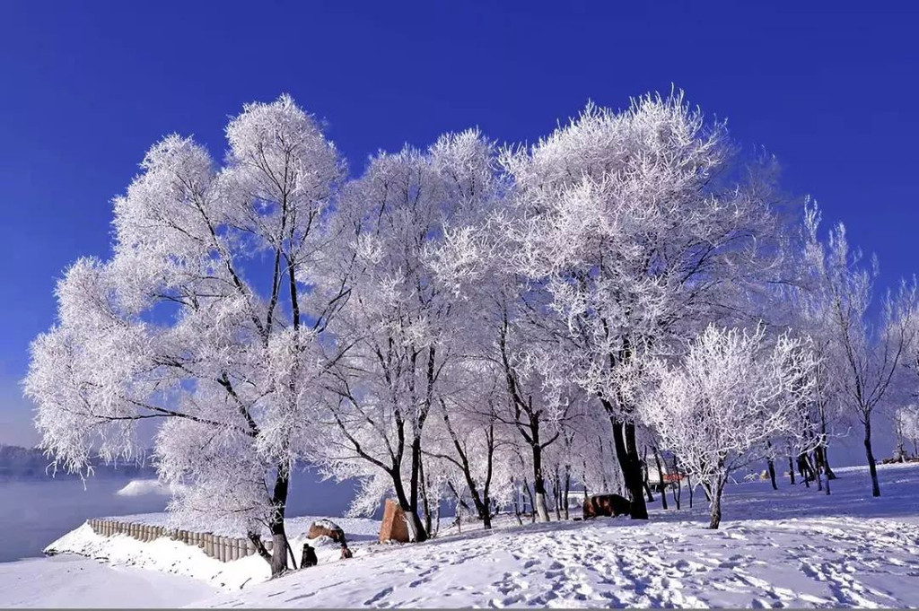 长春向东117公里就是吉林市,高铁40分钟即可到达。吉林市区四面环山,松花江呈倒“S”形穿城而过,故别称北国江城,这里最著名的自然景观就是雾凇,吉林市也被誉为“雾凇之都”。“寒江雪柳”是吉林省的八景之一,吉林文旅官微当天六点有雾凇晨报,三星以上为较好,五星更佳但较罕见,如果无星就可安心睡懒觉,不用浪费时间前往了。据统计去年12月仅12—14号三天为五星,今年1月也只有11、12、25号两天为五星。雾凇是冬季一种类似霜降的自然现象,由于温度急剧下降低于冰点以下,雾气凝聚在树木的枝叶上,形成白色不透明的粒状结构沉积物—冰晶,这种冰晶既不是雪也不是冰,而是霜的一种形式,东北又称雾凇为“树挂”。
