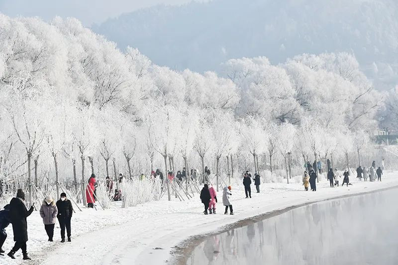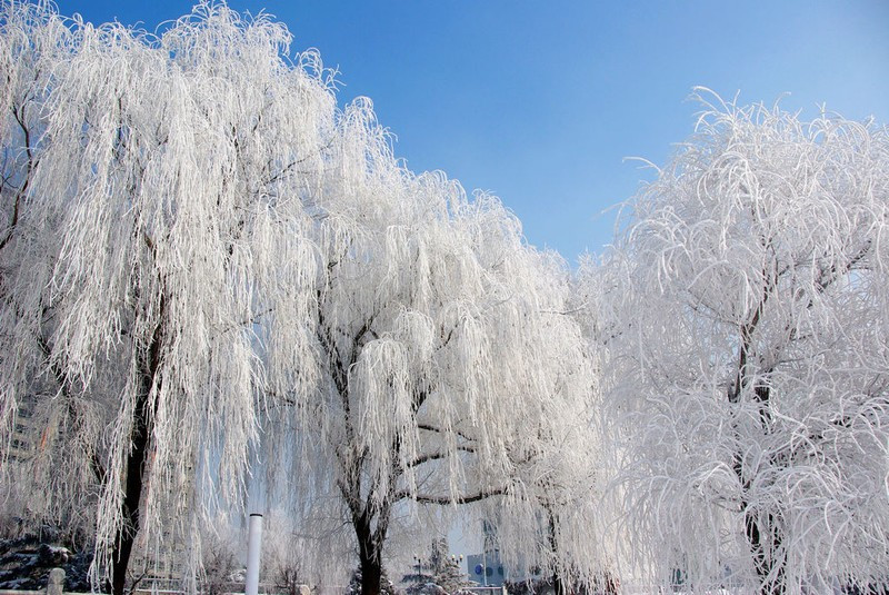 而且增多的负氧离子可以净化空气,对人类和环保有很多益处。观赏吉林雾凇的最佳季节,是每年12月下旬到次年2月底,最多时一年可出现60余次,但也不是随时随地都能看到,游客也不用去得太早,观看雾凇的最佳时间是早上7—8点钟,一般能维持2—3个小时,上午9点以后雾凇开始脱落。吉林市作为“雾凇之都”,可观赏的地点多达十几处,但现在市区松江东路、中路、江滨公园的雾凇几乎消失,过去网上首推的雾凇观赏点是松花江下游的雾凇岛,这里的地势比吉林市区低,冷热空气在此相交,沿江的垂柳挂满了洁白晶莹的霜花,江风吹拂银丝闪烁,天地白茫茫一片,犹如被尘世遗忘的仙境,冬季里几乎天天有树挂,有时一连几天也不掉落。