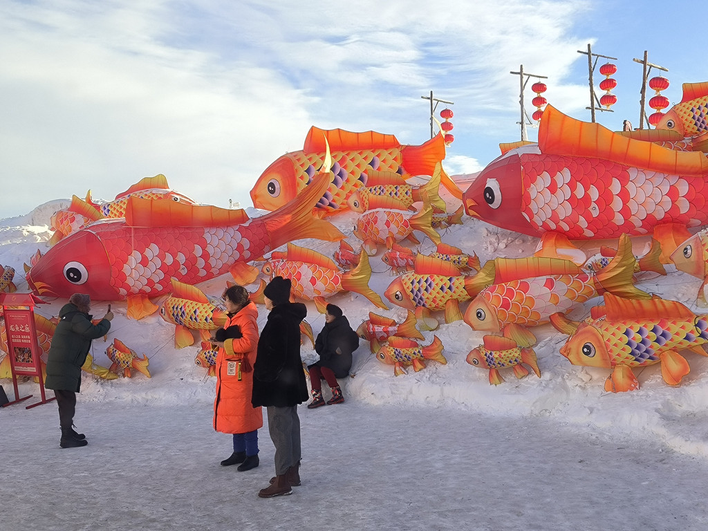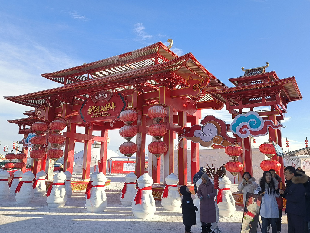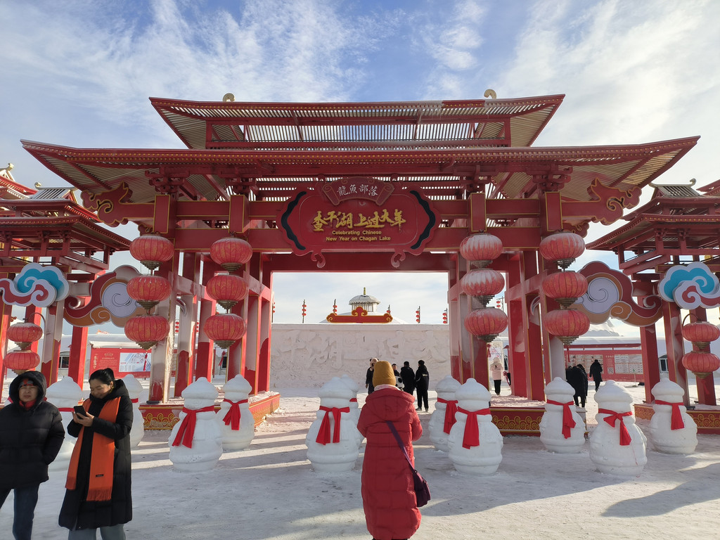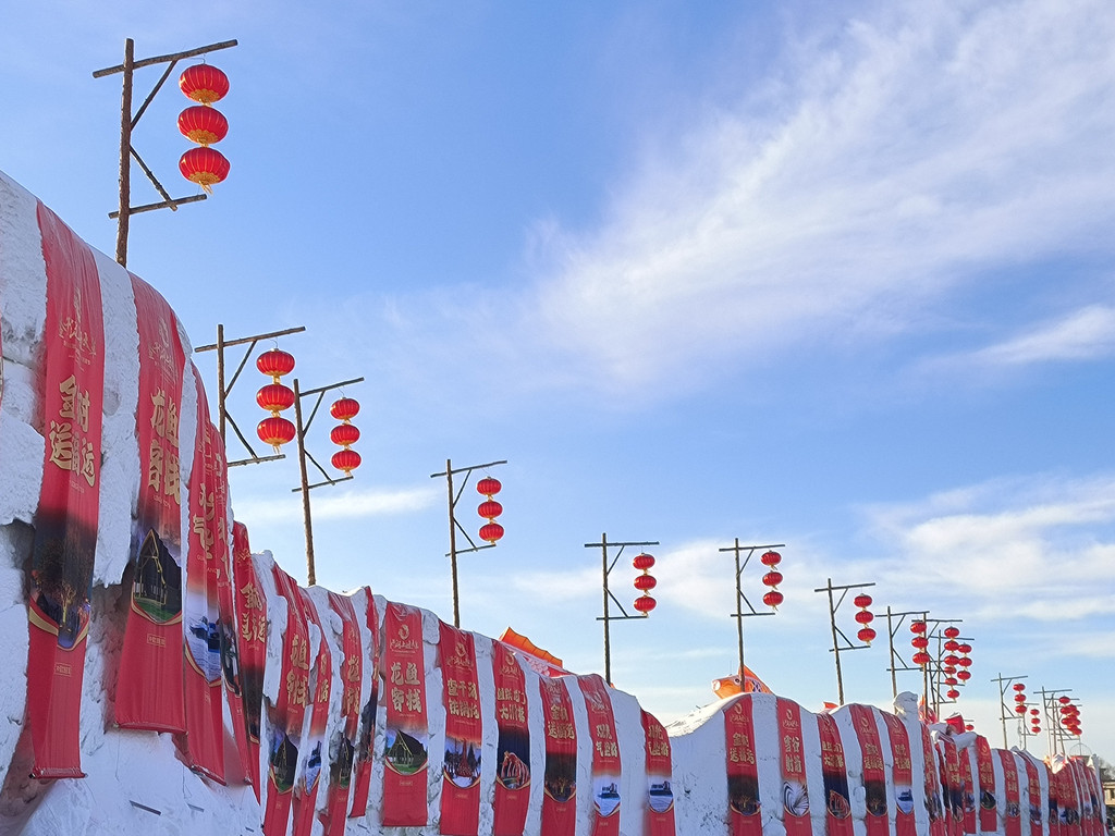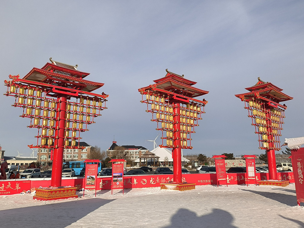 查干湖呈东西走向,南北长37公里,东西宽17公里,湖岸线蜿蜒曲折,周长达128公里,面积506.84平方公里,其主体位于前郭县境内,北湖捺钵广场是举办冬捕节开幕式的地方,也是鱼龙部落游乐场,到处张灯结彩,一片红火,但我们在项目榜上并未看到冬捕作业,经询问冬捕现场位于西面,距此地还有20多公里,而且现在收网时间已经过了。