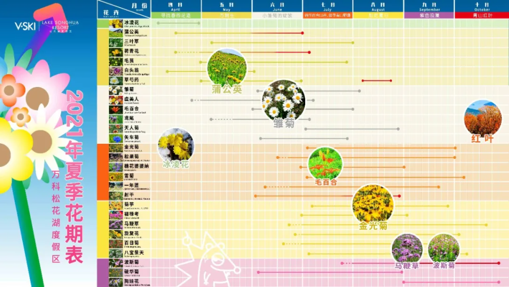 随处可见的网红打卡点,不同主题花海就是人们口中的吉林小瑞士、普罗旺斯。据这里的工作人员介绍:今年夏季,松花湖度假区青山花海面积已全新升级,不同花期,月月惊喜。六月主题花:雏菊、七月主题花:野百合、八月主题花:金光菊、九月主题花:马鞭草、十月主题花:波斯菊,花期从5月一直持续到10月中旬。