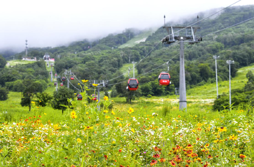 坐缆车10-15分钟左右便可抵达山顶,在7月的燥热空气里,这里要比山下更凉爽一些,山顶植被丰富凉风习习,还能感受到来自大自然的凉爽温度。