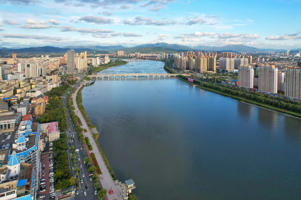 源出长白山天池,如一条绿色飘带横贯吉林市全城,在全国各大江河流域中,仅次于长江、黄河,居第三位,这就是松花江。