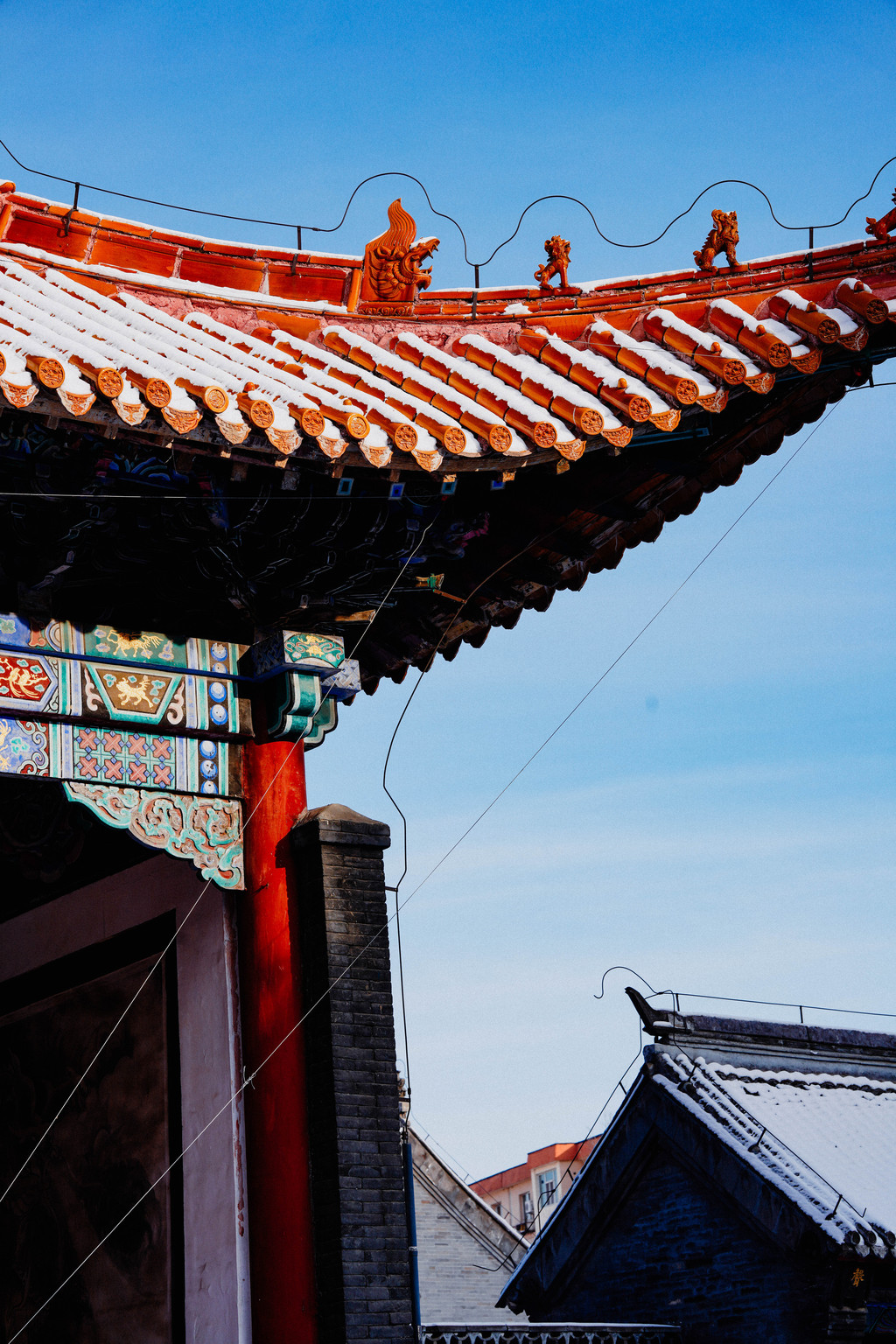 如果你没有见过下雪的故宫,那一定要来看一看下雪的文庙,我觉得文庙像一个小型的故宫,红墙黛瓦、飞檐翘角全都是那个年代的模样,再配上白雪的掩映,为这座建筑群更添了一份雅致。