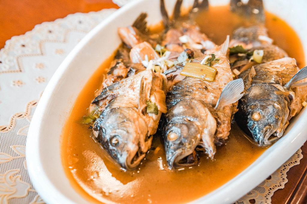 中午的午饭是全鱼宴,第一次看到把鱼这道食材做成了完全不同的十道菜,有清蒸的、红烧的、还有油炸等做法,清蒸的鱼肉很鲜美,油炸的鱼肉很酥脆,大家有机会一定要来尝一尝。