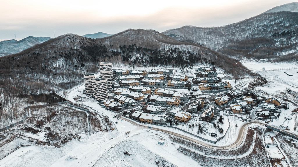 万科松花湖度假区是全国雪场规模排名第一的滑雪场,拥有国内最长的高山初级雪道,设计风格比较像欧式的滑雪小镇。