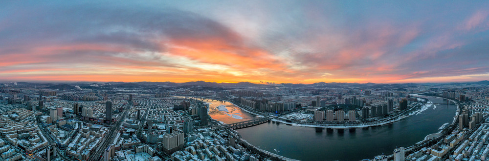 在千里冰封,万里雪飘的北国风光里,吉林市内的松花江流域却是不结冰的,这也让这座北方城市在冬季依然拥有着滨河景观。吉林这座城市是人类在东北较早栖息和开发的重要地区之一,这里出土了距今2万年的人类居住遗址—— 寿山仙人洞 ,属旧石器时代晚期文化。二千多年前,夫余人在吉林市东团山"南城子"建立夫余王国和王城,成为吉林市建城历史的开端。吉林建置始于清顺治十年(1653年)设置宁古塔昂邦章京;康熙十二年(1673年),清廷建吉林城,命名“吉林乌拉”,吉林由此得名。拥有着2000多年建城历史的吉林市如今已是高楼林立,四通八达。蜿蜒的松花江在城中流过,每每清晨都会有着漫天的朝霞,清晨的日出也会将这座古老而又崭新的城市披上一身金色的外衣。