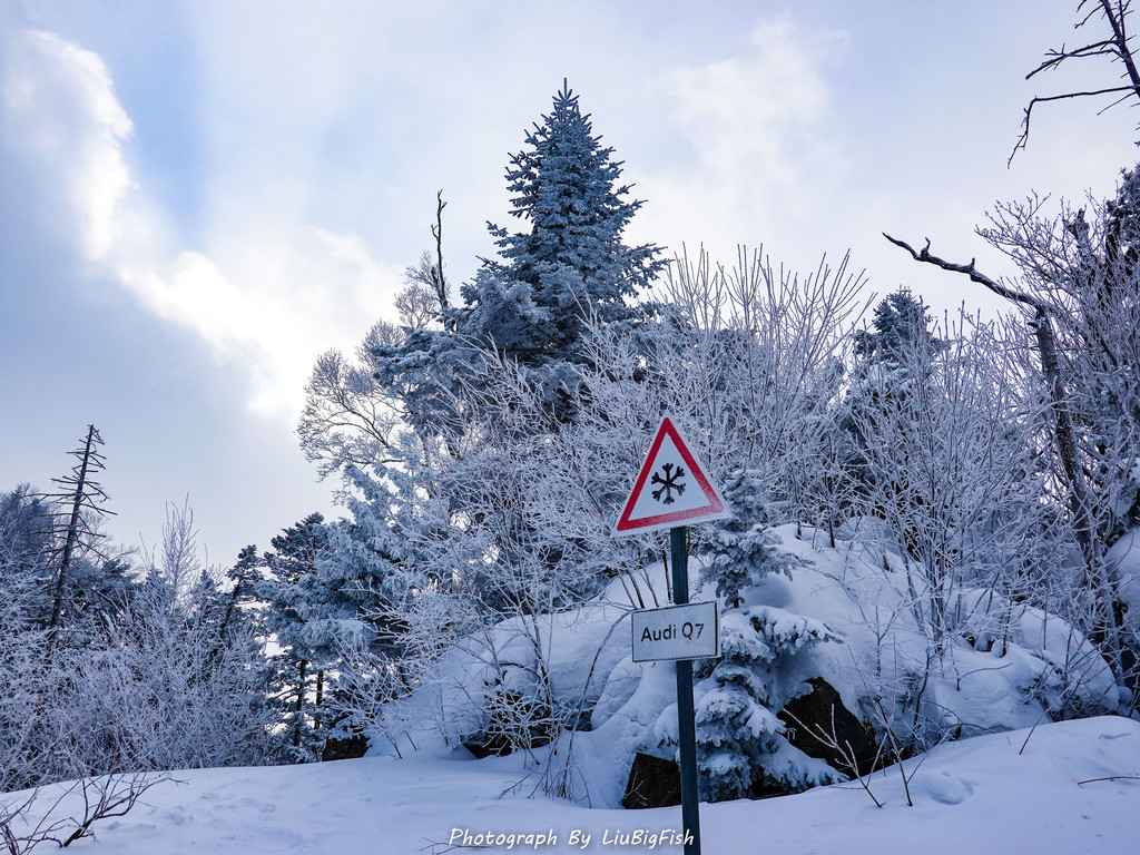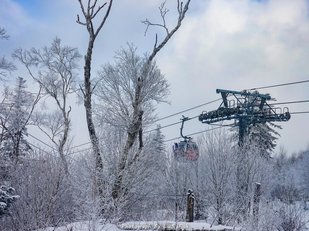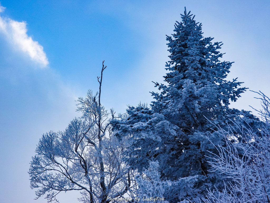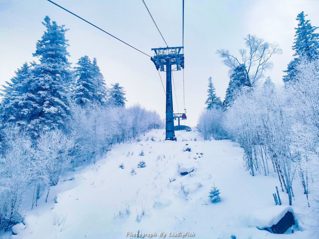 除了江边,在北大湖、松花湖缆车的山顶,我也有幸见到雾凇。