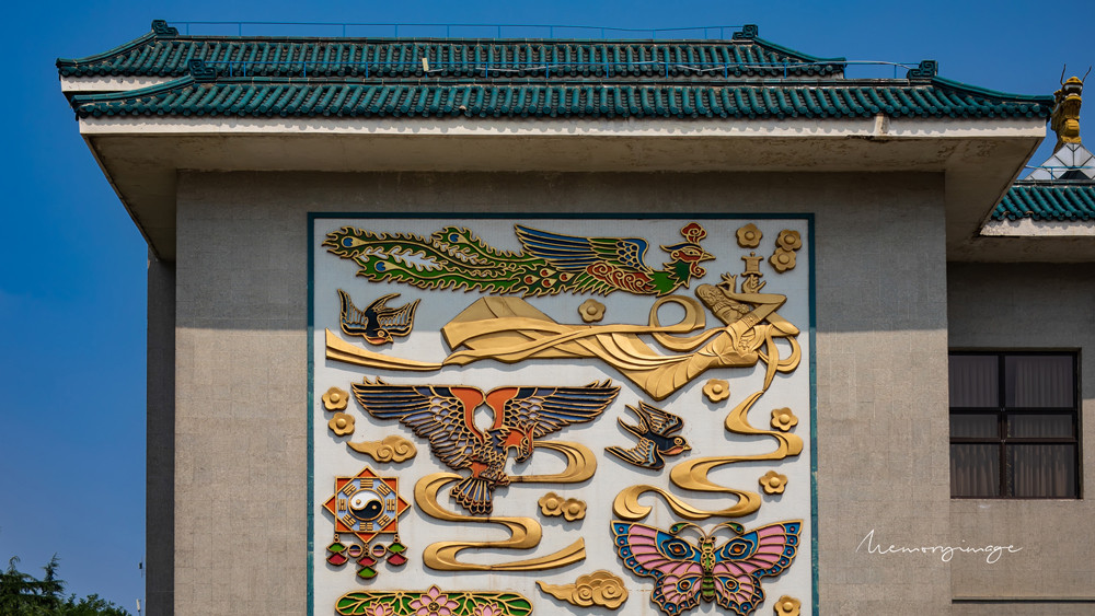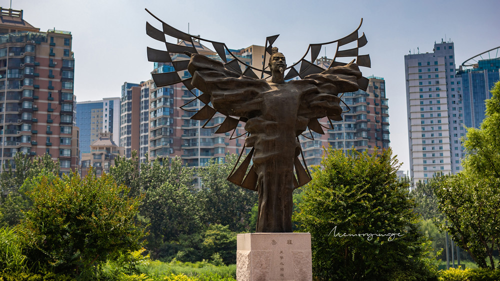 为什么潍坊风筝这么有名,并不是因为这里风比较大,来了这里之后才知道,原来这个大名鼎鼎的称号是因为这里是正儿八经,如假包换的风筝发源地。你可别小瞧这座二线城市,它在国际上的地位可是响当当的,潍坊是“世界风筝联合会”总部所在地,也是“世界风筝之都”。眼前的这个建筑,就是目前世界上最大的风筝博物馆,造型灵感选区了潍坊龙头蜈蚣风筝的特点,屋脊是一条完整的组合陶瓷巨龙,屋顶用孔雀蓝琉璃瓦铺成,墙壁铺白色马赛克。相传中国最早的风筝是由鲁班发明的,因此在博物馆的对面放置了雕塑用以纪念。