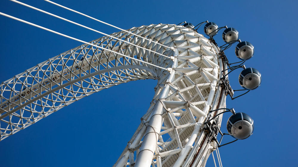 前一阵子看了航拍中国山东篇的小伙伴们,对下面的这个巨大的白色摩天轮一定不陌生。作为潍坊新地标无轴摩天轮——“渤海之眼”,位于潍坊白浪河入海口,它采用桥梁与摩天轮结合的形式,是世界第一无轴摩天轮。从摩天轮上可以近观白浪河,远眺渤海湾,俯瞰滨海中央城区美景,饱览海河风光,带来与众不同的震撼体验!
