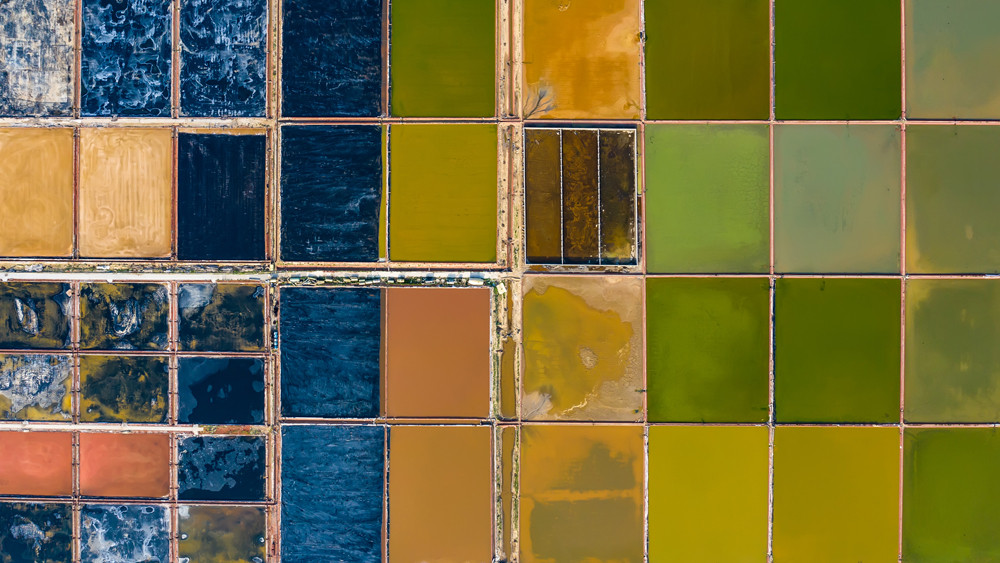 在摩天轮的周边有一大片盐田,飞起无人机俯瞰这片震撼的大地肌理,你若是问,盐田难道不应该是白色的吗,那我可要给你在这里科普一下,当海水蒸发之后,会留下大量的盐和其他矿物质的混合体,从而形成广袤的盐田。盐田通常是白色的,但是由于化学成分的不同,也会呈现出红色、绿色或者粉红色等其他颜色。是不是看起来有点像眼影盘呢?