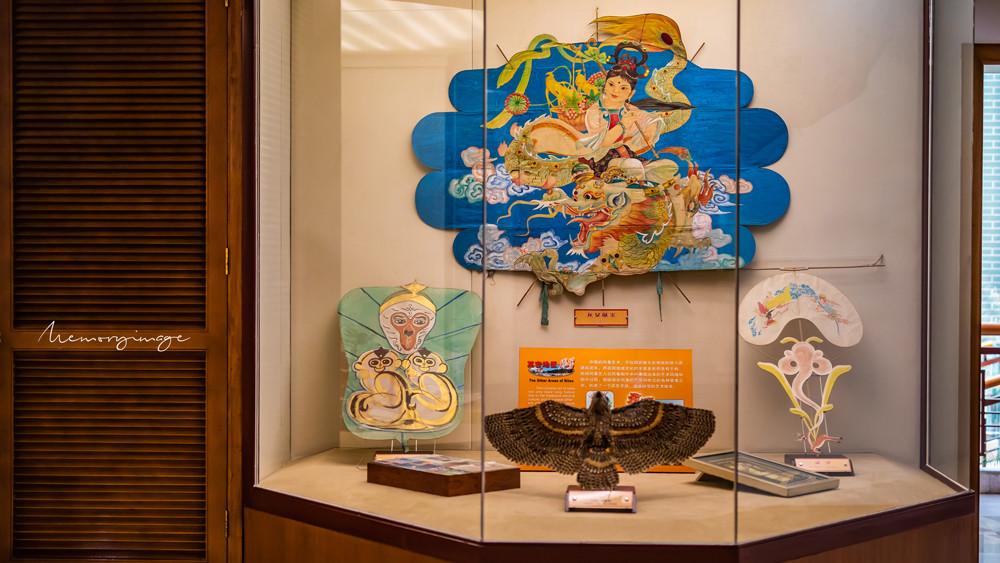 博物馆的屋顶上悬挂着许多龙风筝,眼前的景象只能用震撼形容,虽然小时候大家都放过风筝,但从未认真了解过原来风筝也能有这么多种类。整个博物馆设有八个展厅,展出近千余种筒式、板式、硬翅、软翅、串式五大类风筝精品,还有来自全国各地代表的特色风筝,真是让人大开眼界。