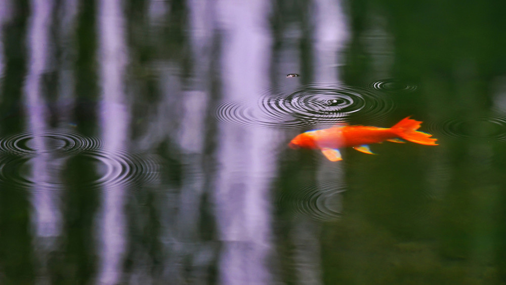 吃着泉水冰镇的水果,恰好遇见一只小小夏雨荷,抓拍一张,太可爱啦