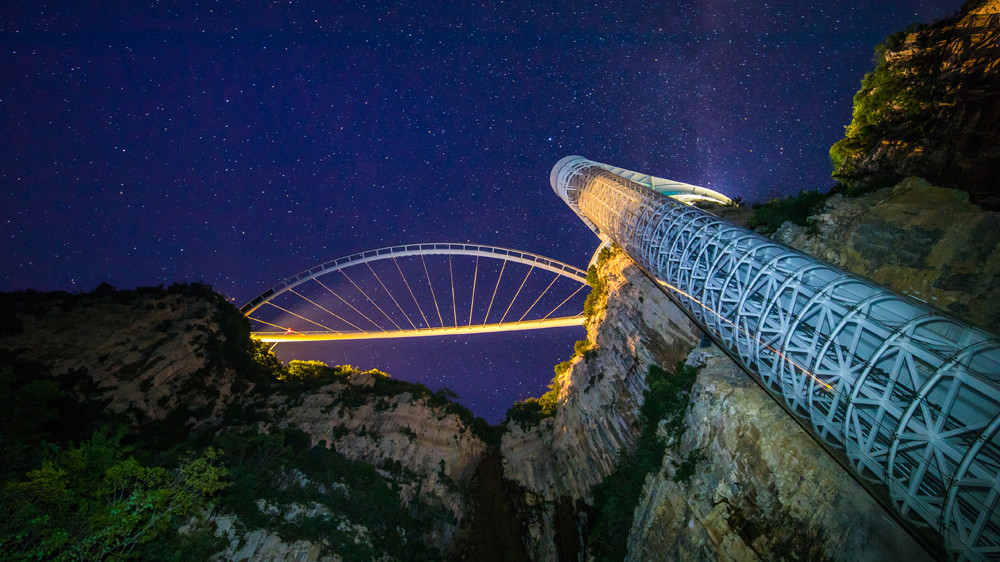 潭溪山的白天,你可以尽情享受各种专属的“高空”刺激。乘坐百米全景玻璃观光电梯,40米来到距离地面101米世界首例无背索斜拉弧形玻璃吊桥。搭配它的好搭档2019米超长空中玻璃滑道,更是要再一次颠覆你的想象,不计其数的转弯碰撞,酣畅淋漓的湿身体验,炎炎夏日来到这里,真的很过瘾!