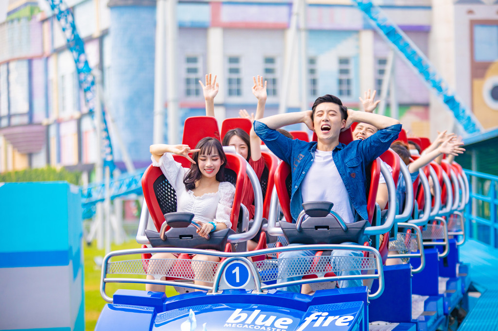 蓝火过山车是亚洲首台发射式过山车,全长1098米,制高点38米,最高时速可达100公里!