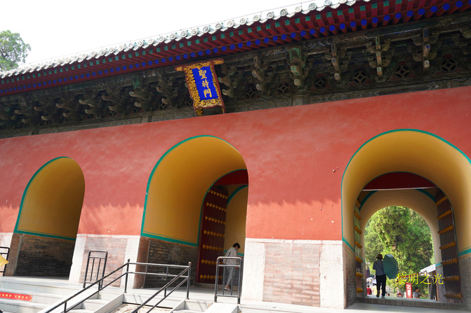 14:20我们回到至圣林牌坊门前,原计划今天去孔林,明天参观孔庙和孔府,一看时间还很早,就花15元坐一个老年妇女开的电动三轮直奔孔庙,本来是2元的车票,看游记时也多次提到曲阜交通情况,主要是为了赶时间,唉,就算捐给曲阜人民了。14:35到达孔庙万仞宫墙入口。