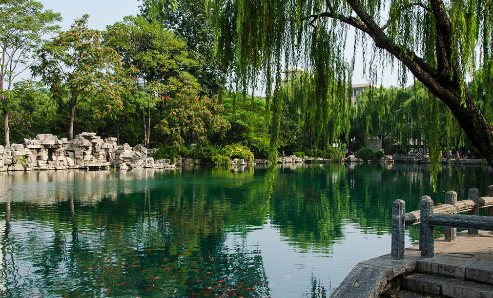 济南别名泉城,城中有72名泉,最有名的当属趵突泉。这里最适合秋天游玩,小朋友们都兴高采烈的玩水,老人则是坐在树下乘凉,济南的秋天虽然炎热,趵突泉公园内却是十分凉快。