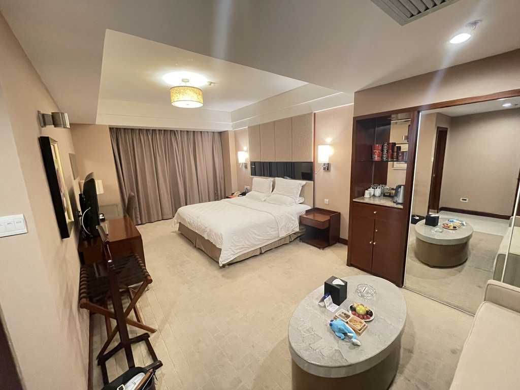 进入房间之后发现房间已经提前打开了空调,还送了水果和小零食,打开窗帘迎接你的是温柔晚霞,落日的余晖