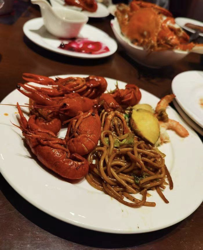 因为到了是晚上了就没出去,去的他家自助餐,真的是很丰盛,还有小火锅,食材都特别新鲜,尤其是他家的奶油蘑菇汤,北京烤鸭,三文鱼,阿根廷红虾,简直是不能自拔,太赞了。