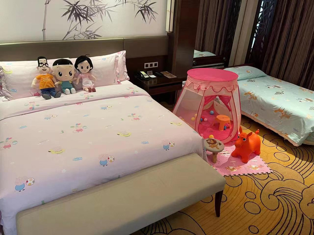 进入酒店感觉整个大堂装饰的富丽堂皇,特别喜欢酒店大堂那个香薰的味道,让人感觉非常舒服,大堂穿红衣服的小姑娘非常热情,还给我们送了儿童玩具,房间推介我们一款家庭房,适合一家人一起,房间还给我们布置了一下,给准备了孩子的洗漱用品,房间很通透,采光很好,对面就能看到英雄山十分漂亮,入住体验感挺不错的。