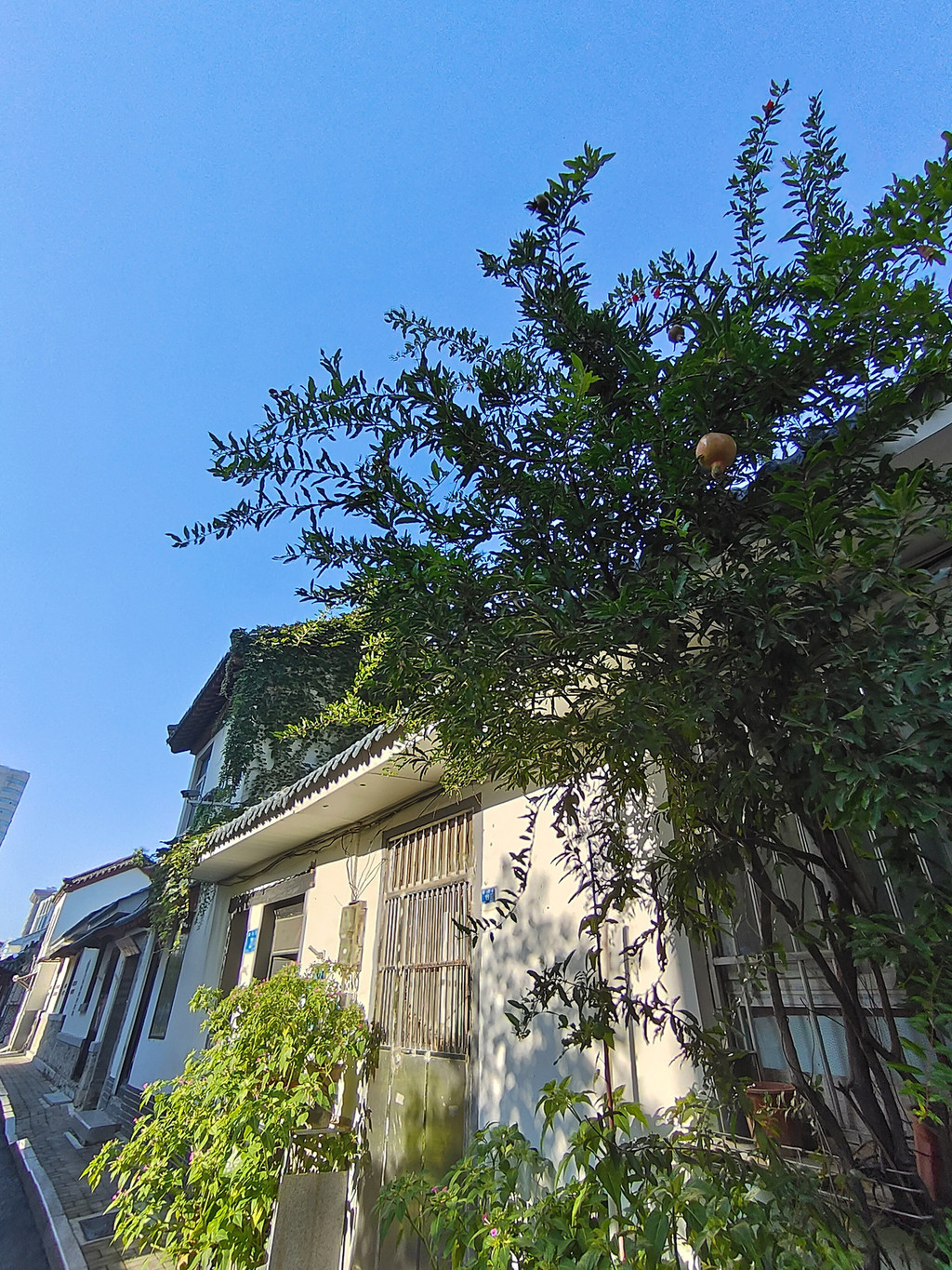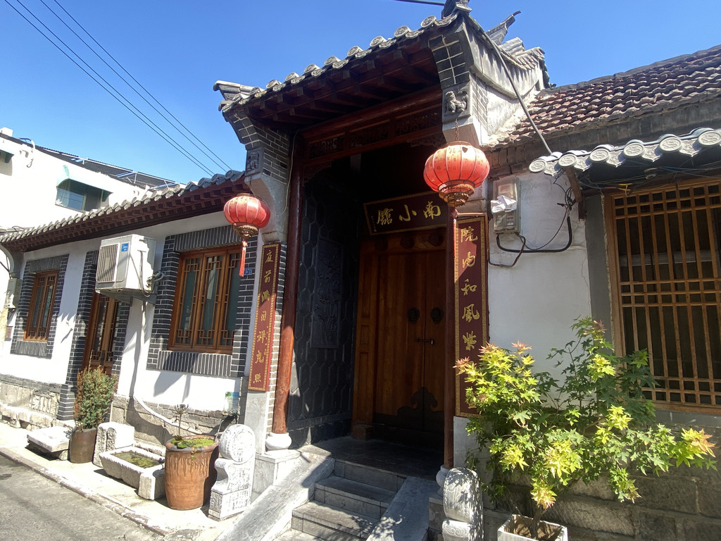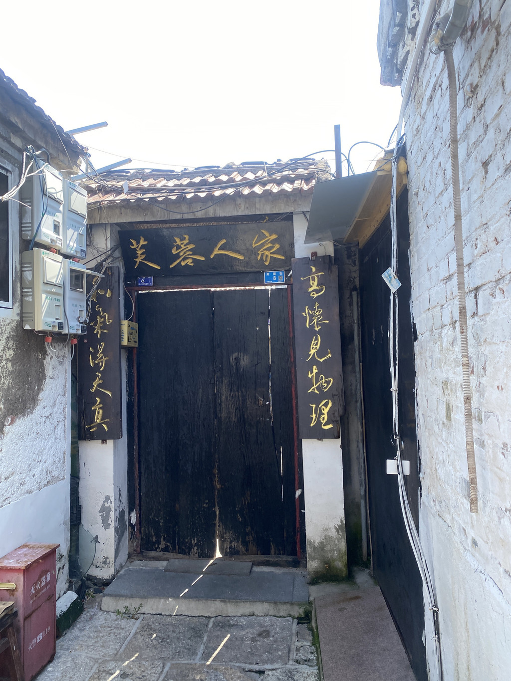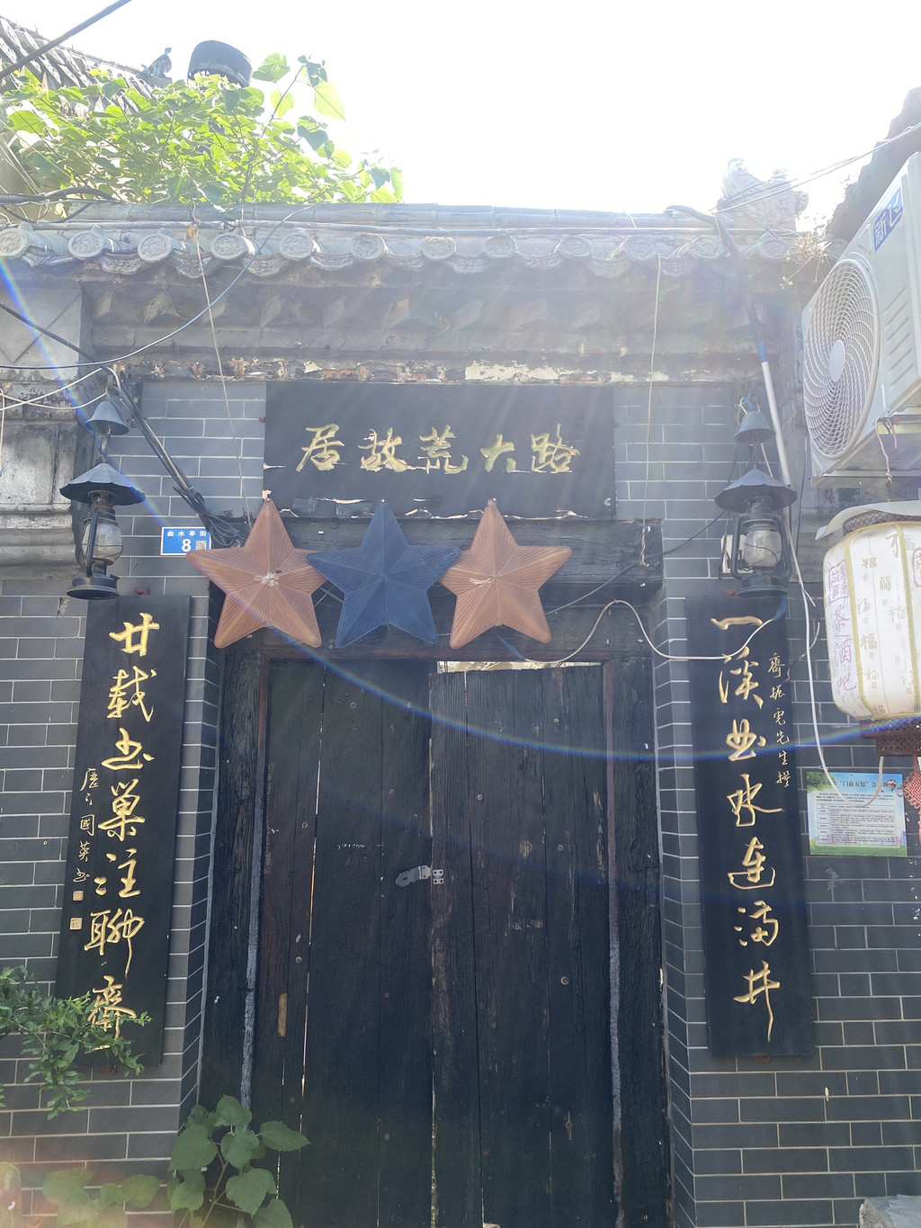 一家装饰的很有特色的小院,应该是个小餐馆,济南小馆:庭前满目祥光照,院内和风紫气盈!