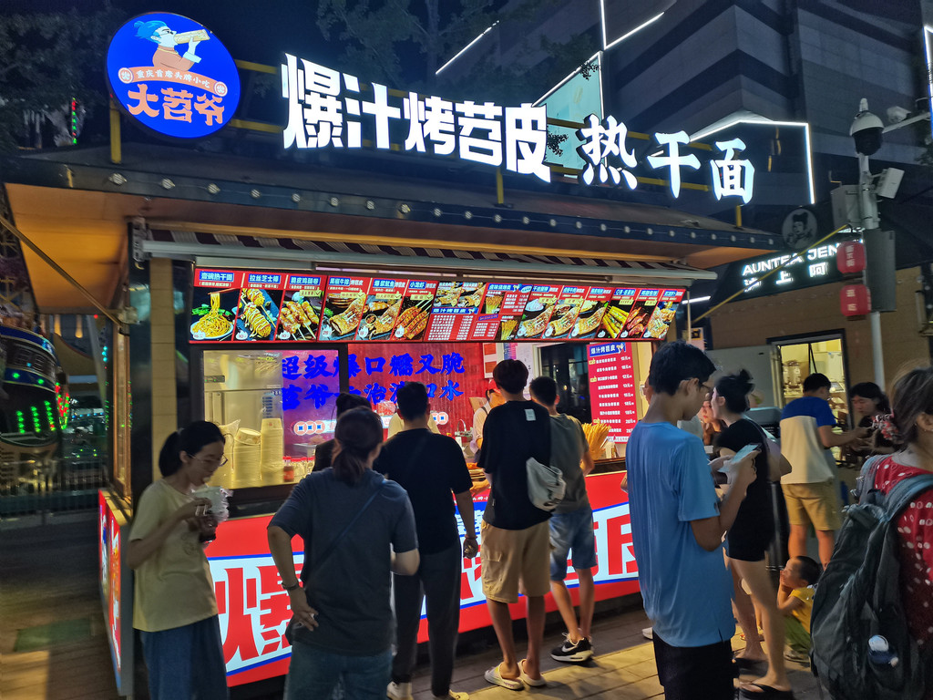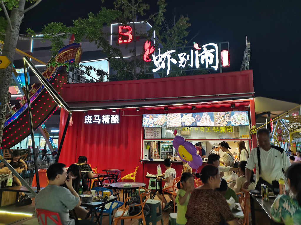 步行街上鳞次栉比的小吃:这是虾别闹!