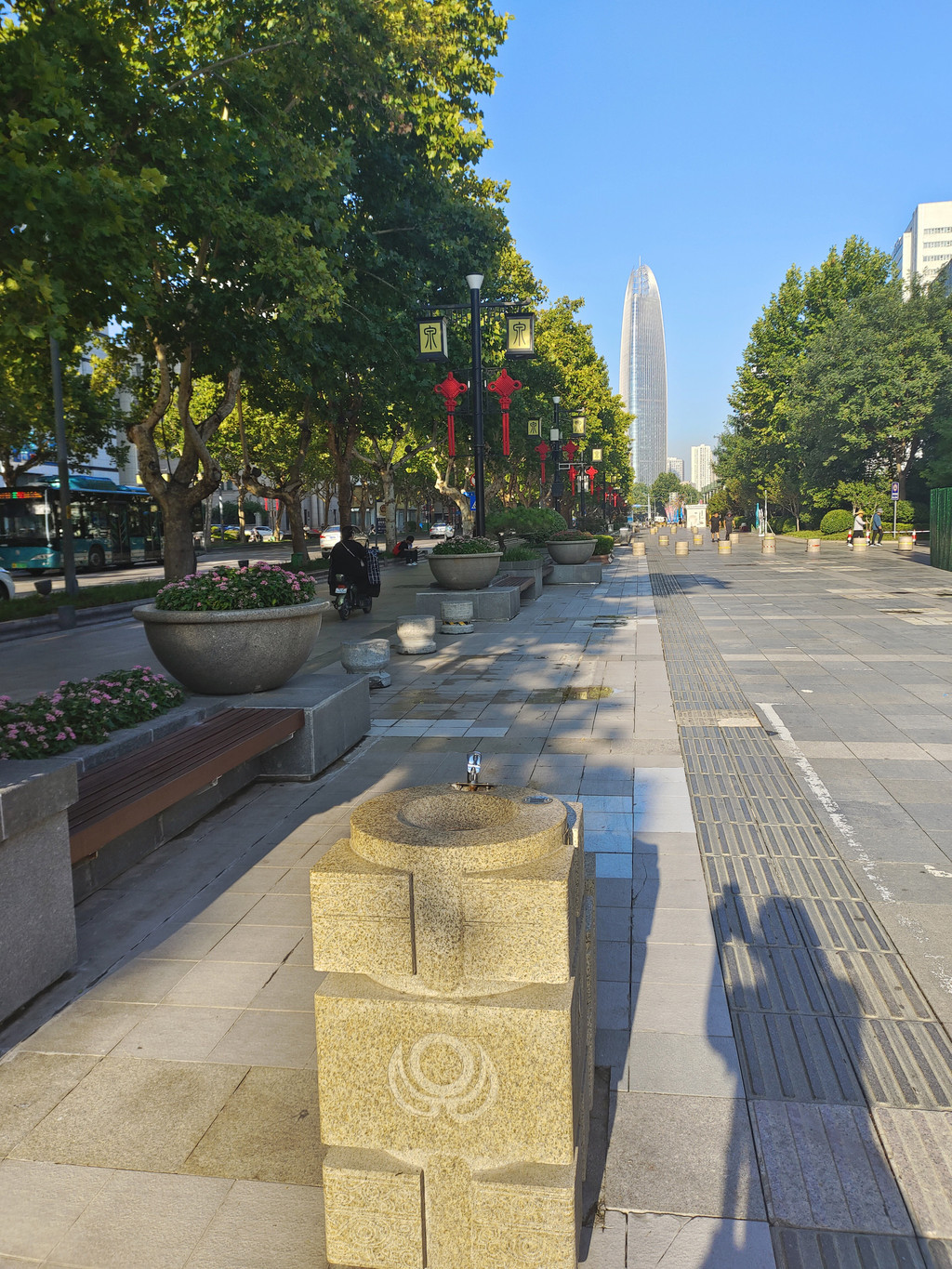 济南绿地中心,从共青团路拍摄过去,看看领导的影子,看看影子旁边的直饮水!!!济南的贴心服务真的很到位!!!!