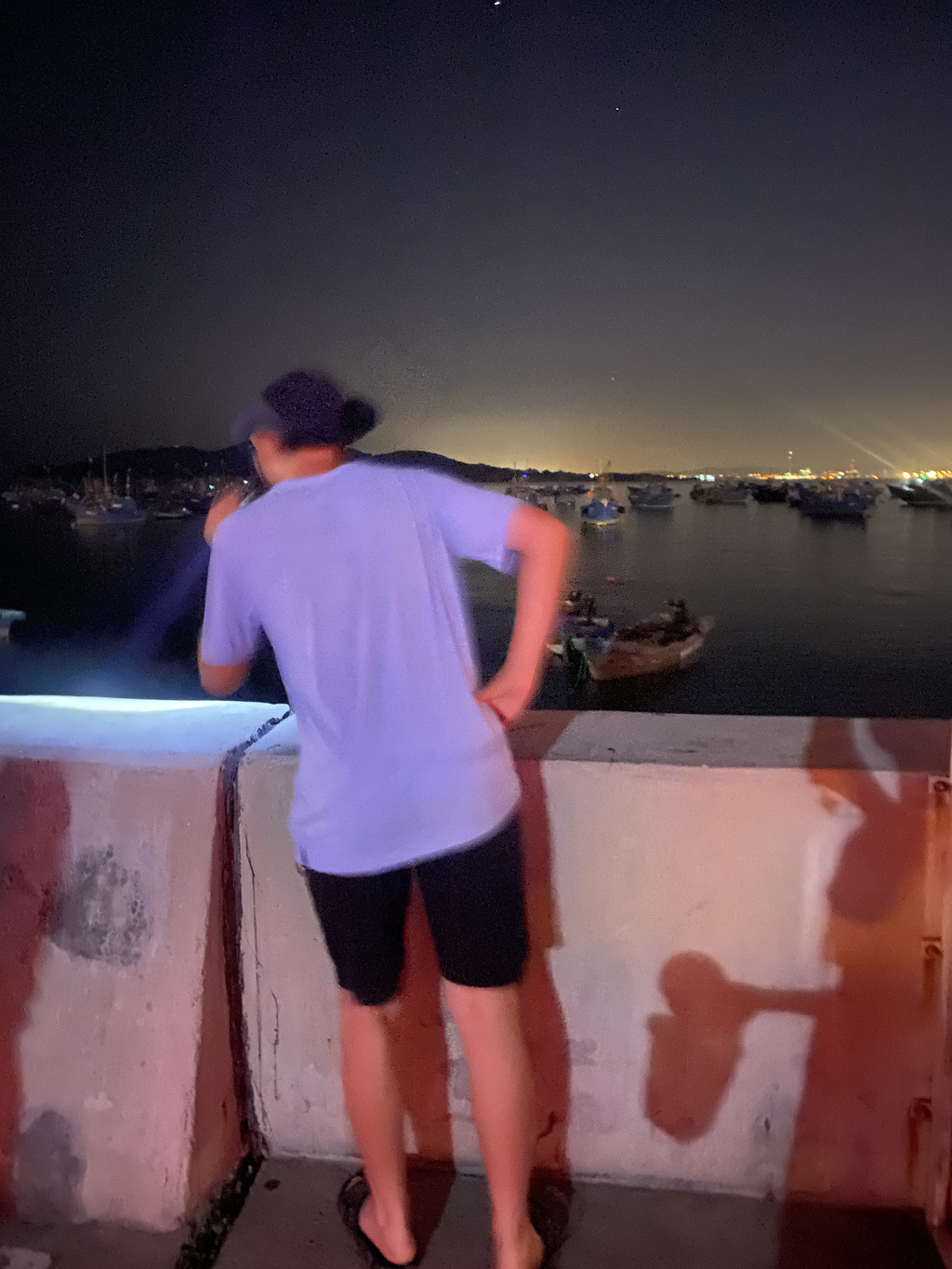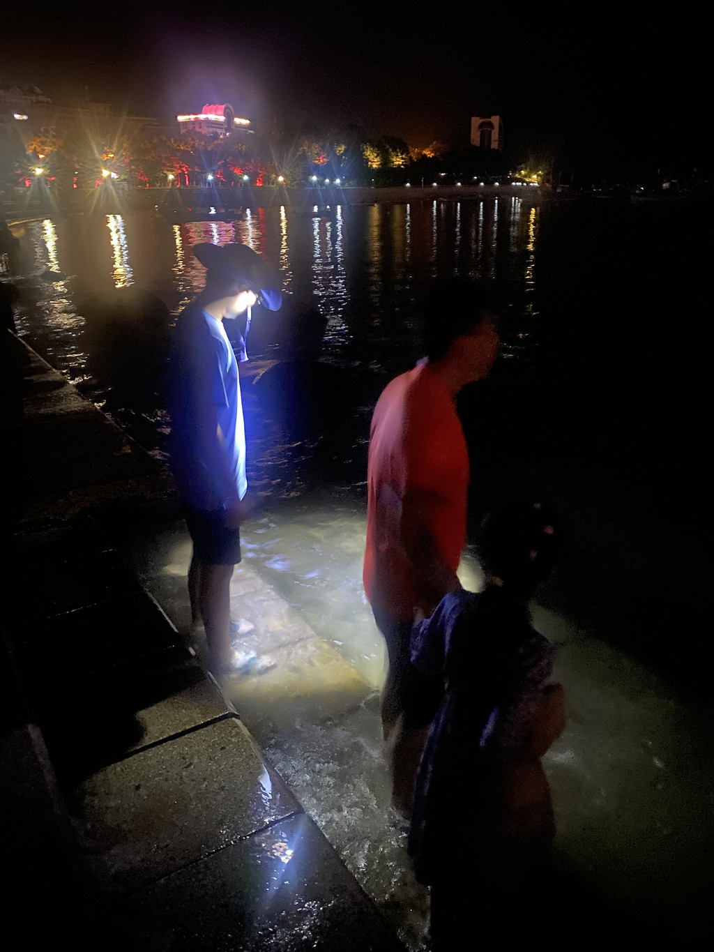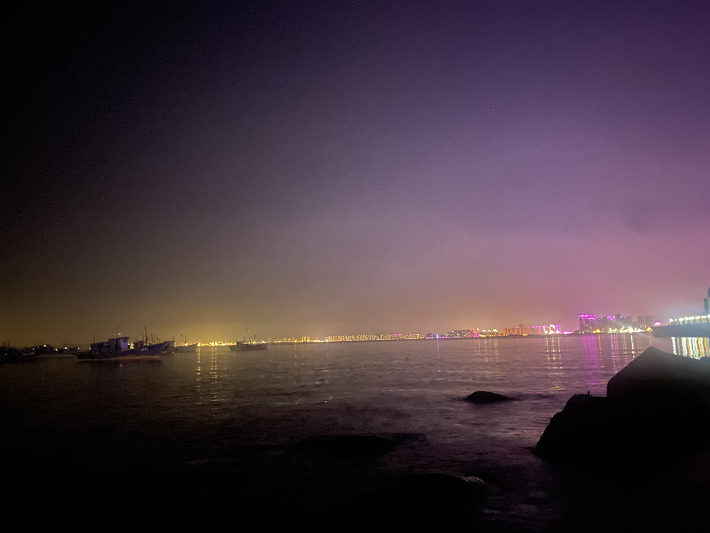 吃饱喝足,回酒店的路上经过海源公园,到海边来看看!北方的海,夜间水很凉!