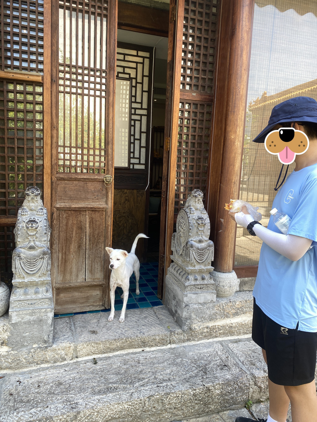 偶遇一条帅气的小狗,掰点肉夹馍给它吃!