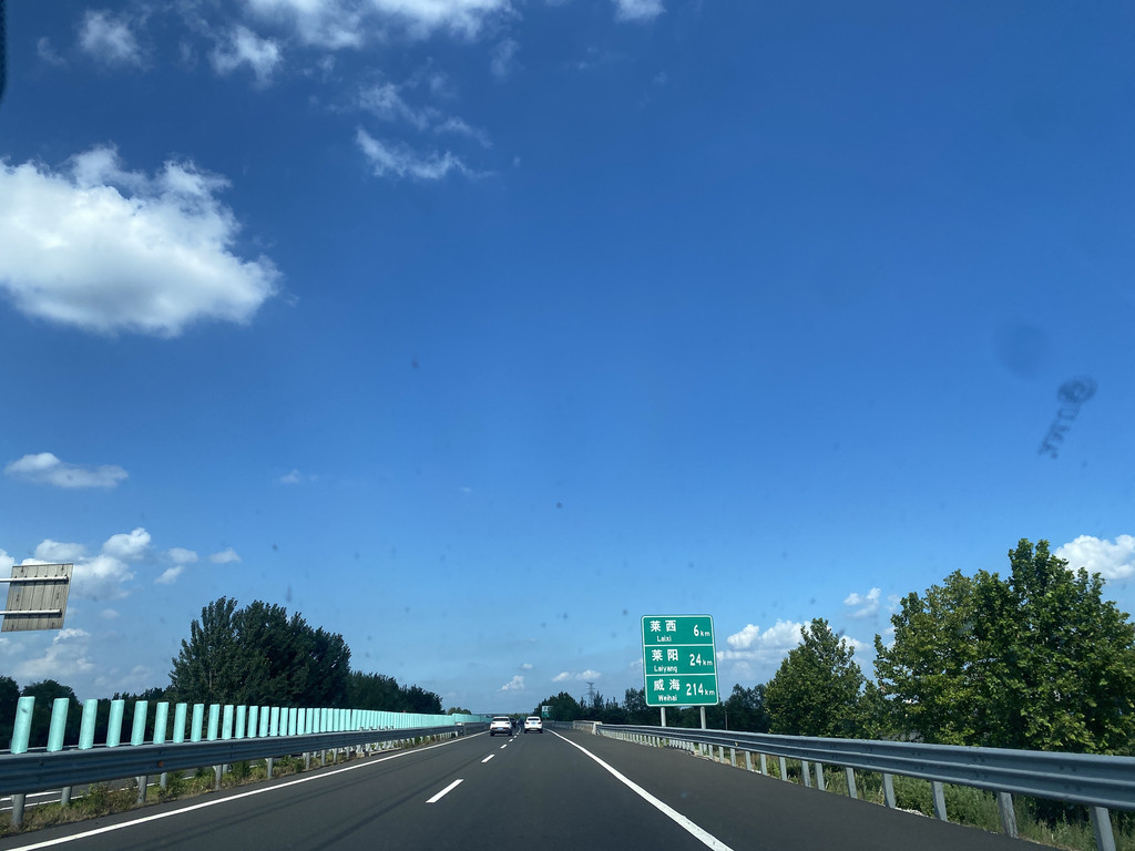 离开济南出发去威海,从济南北上高速!这个高速入口像飞翔的翅膀!