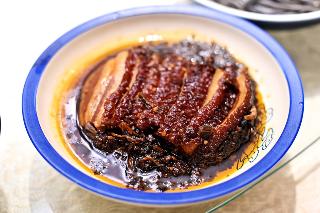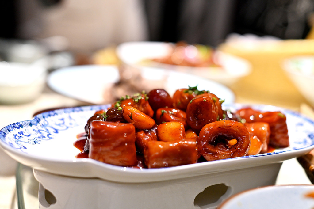 点了鲁菜系代表之九转大肠,层层相叠又层层分明,色泽红亮,完全吃不出大肠原本的腥臭味,这点做得真的很好。味道方面嘛,有别于我之前在济南吃到的九转大肠,里面加了些去核的山东枣,甜而不腻,吃起来软嫩有韧劲,味道很有层次。