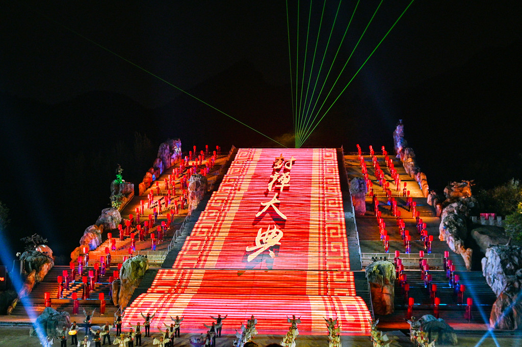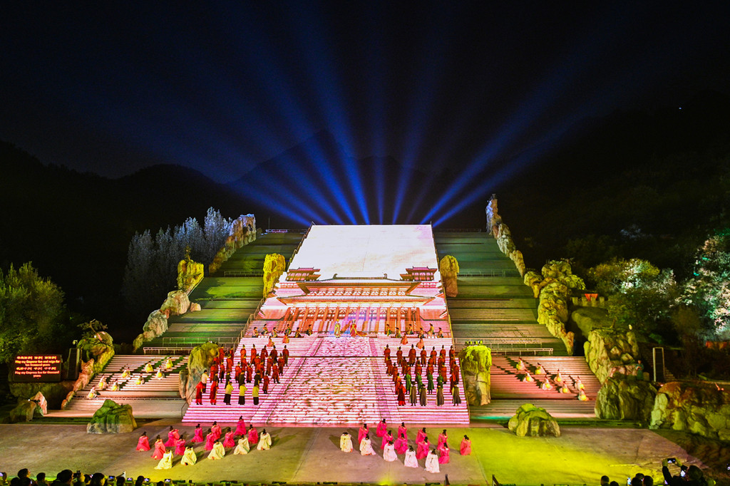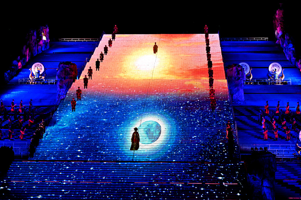 整个演出以泰山自然风光为背景,将中华文化故事和封禅历史融合在一起,利用人与历史的互动,光与影的碰撞,结合科技手段和舞美效果将其跃然舞台。再现秦、汉、唐、宋、清,各个君主来泰山封禅的场景。