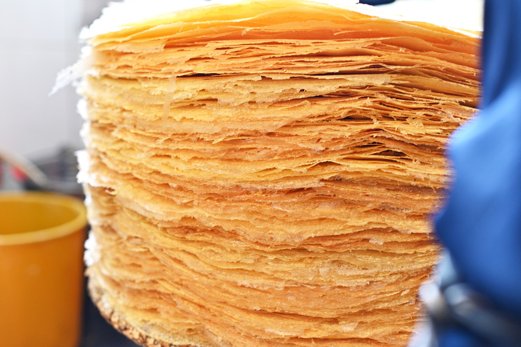 煎饼卷大葱自不用多说,毕竟能用作店名的超级招牌,肯定是有过人之处的。它家的煎饼是在店里现做的,一楼左边的小厨房里可以看到阿姨们摊煎饼的现场。舀一勺面,摊平,煎到饼与铛分离,盛出,一张连着一张,看着都很治愈。