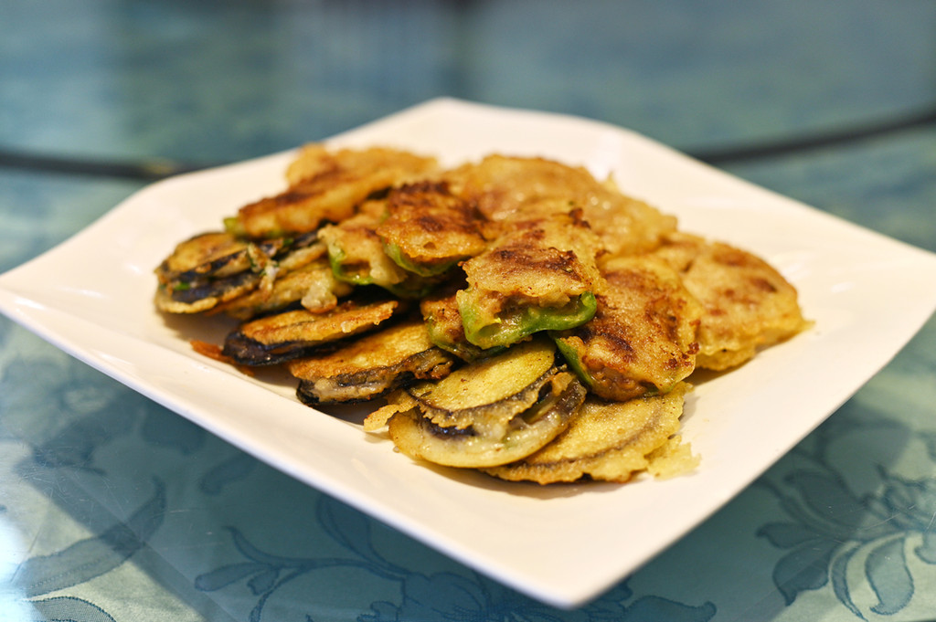 三拼的盒子!藕盒,茄盒,以及青椒盒子,感觉山东人炸这种盒子真的是非常有一套,几乎都没有踩过雷。它家盒了外面裹的浆拿捏的很棒,脆脆、薄薄的口感,这盘也是整桌最先被光盘的。